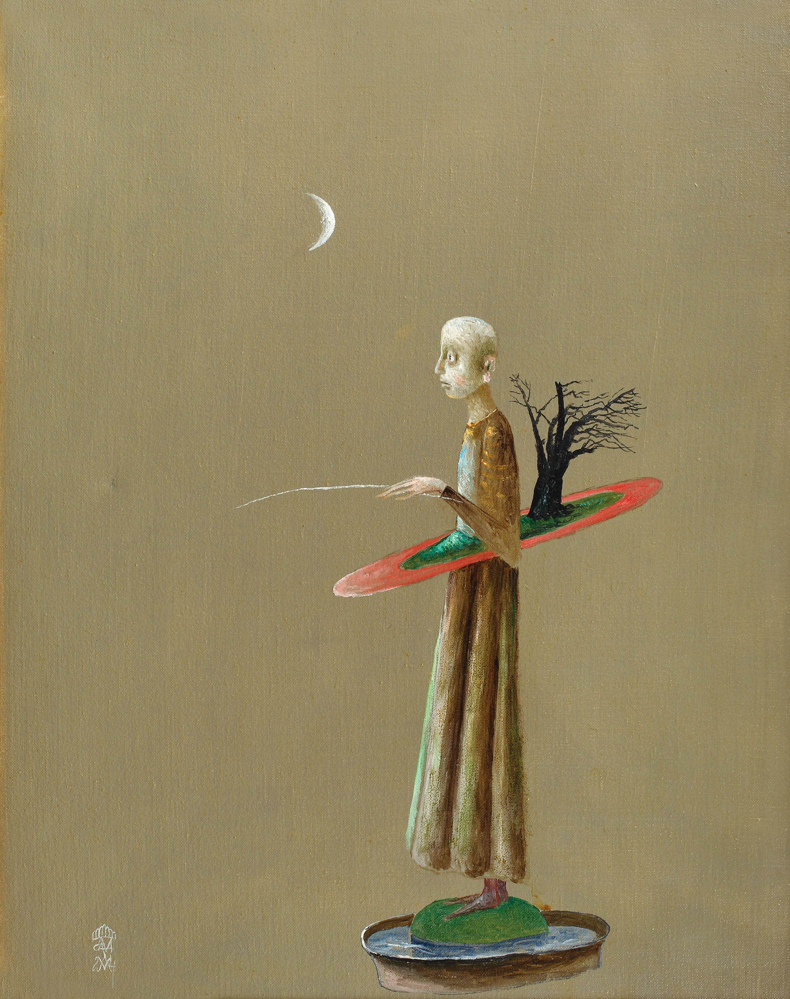 semnat şi datat stânga jos, cu alb, în monogramă, "Câlţia, 2004"