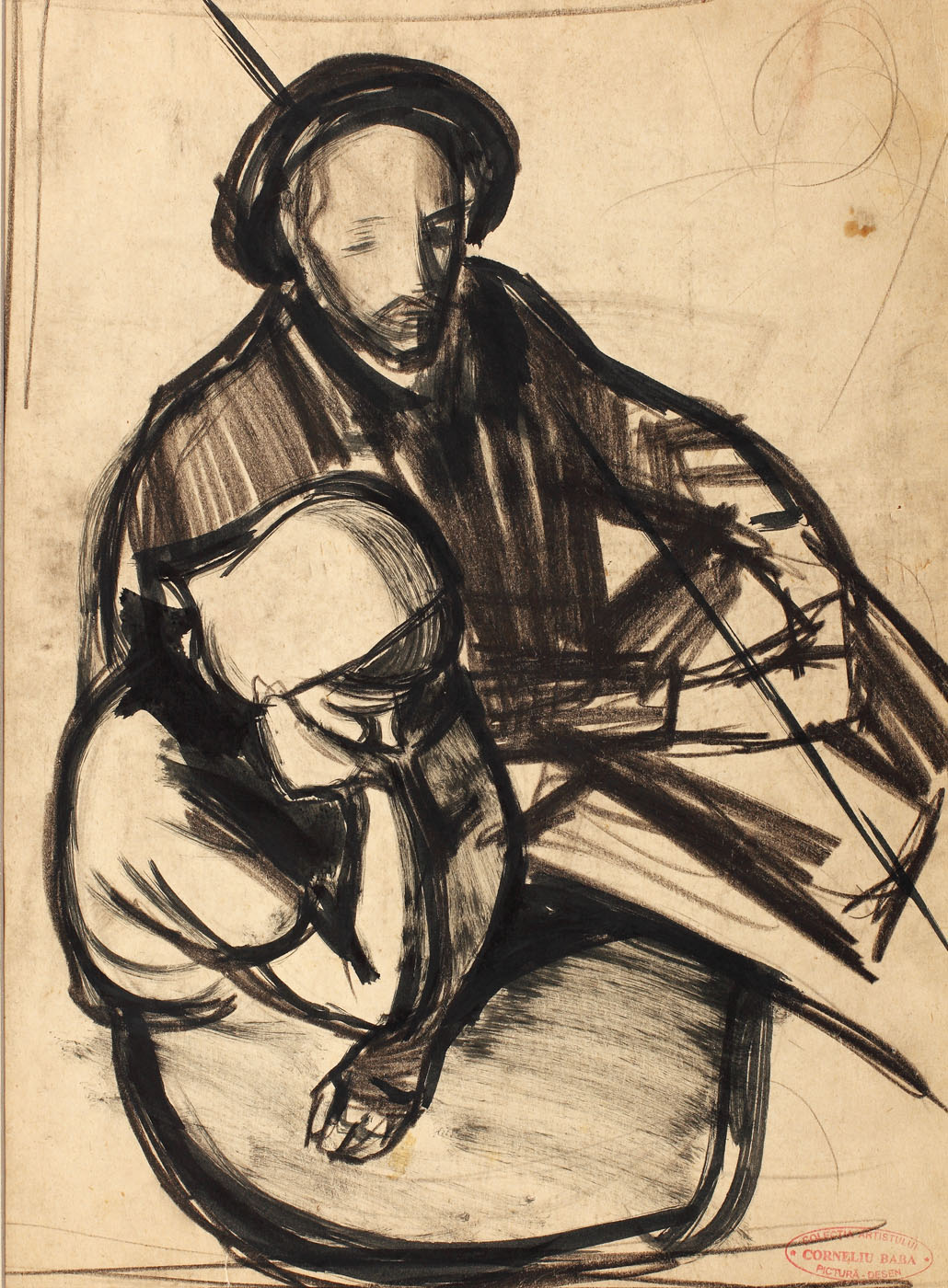 acuarelă, cărbune şi creion pe hârtie