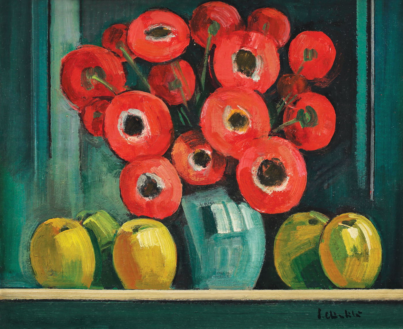 semnat dreapta jos, cu negru, "S. Chintilă"; datat pe verso, "(19)73"