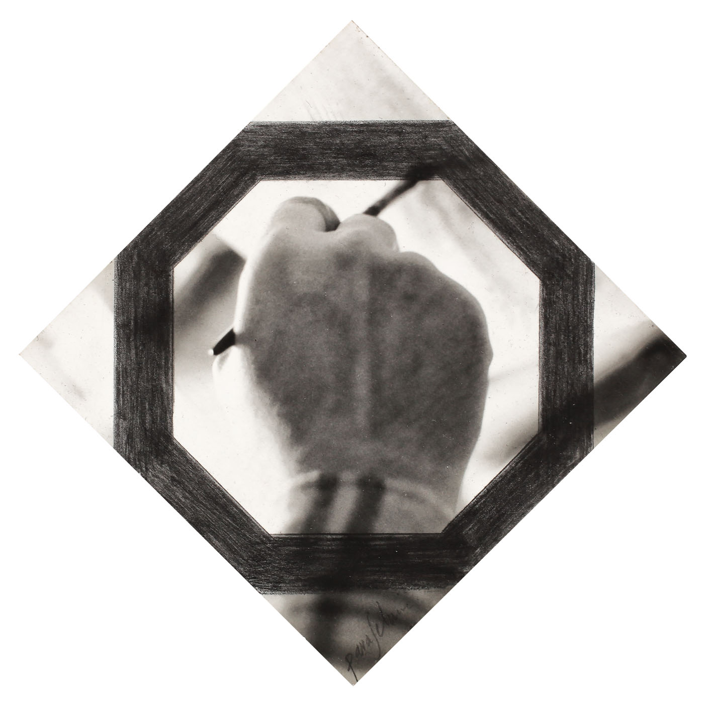 creion pe fotografie lipită pe carton