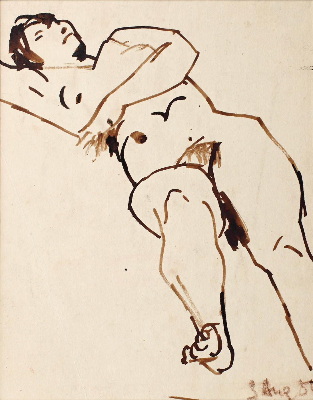 semnat şi datat dreapta jos, în creion, "Baba, (19)54"
