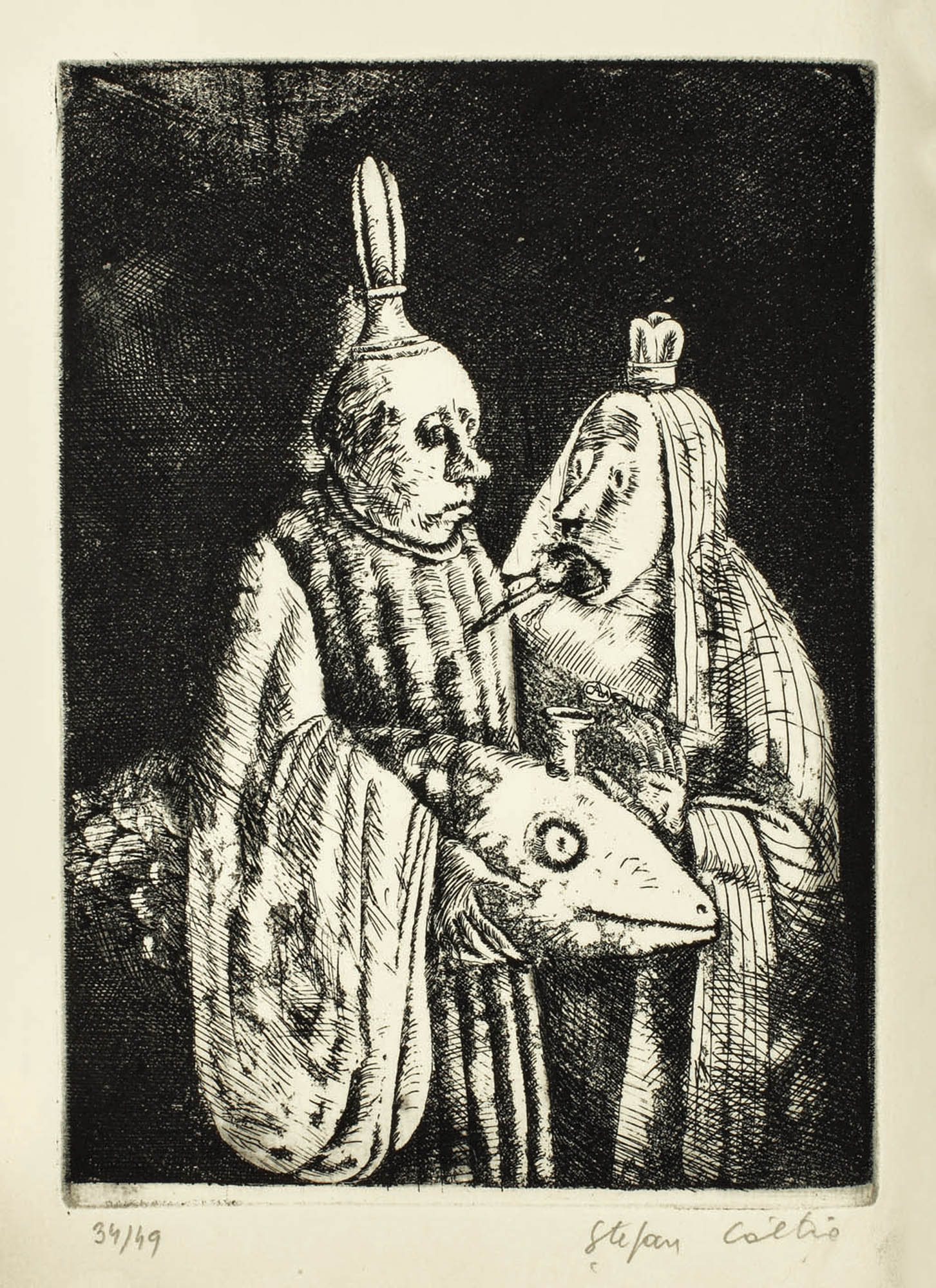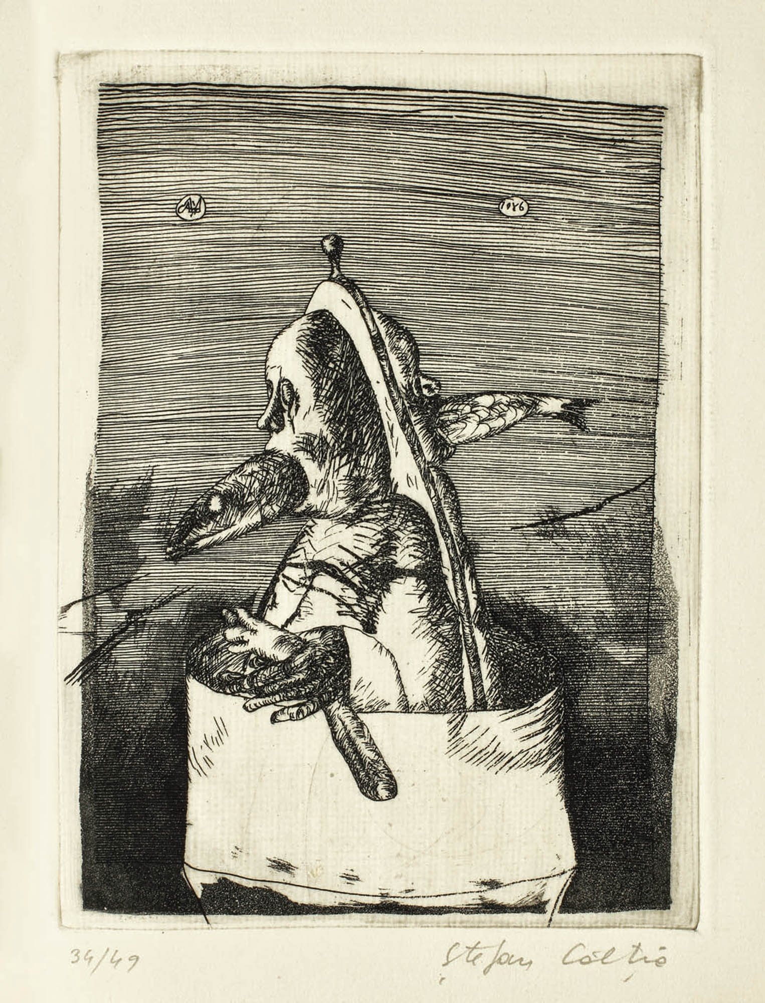 semnat dreapta jos, în creion, "Ştefan Câlţia"; numerotat stânga jos, în creion, "34/ 49"