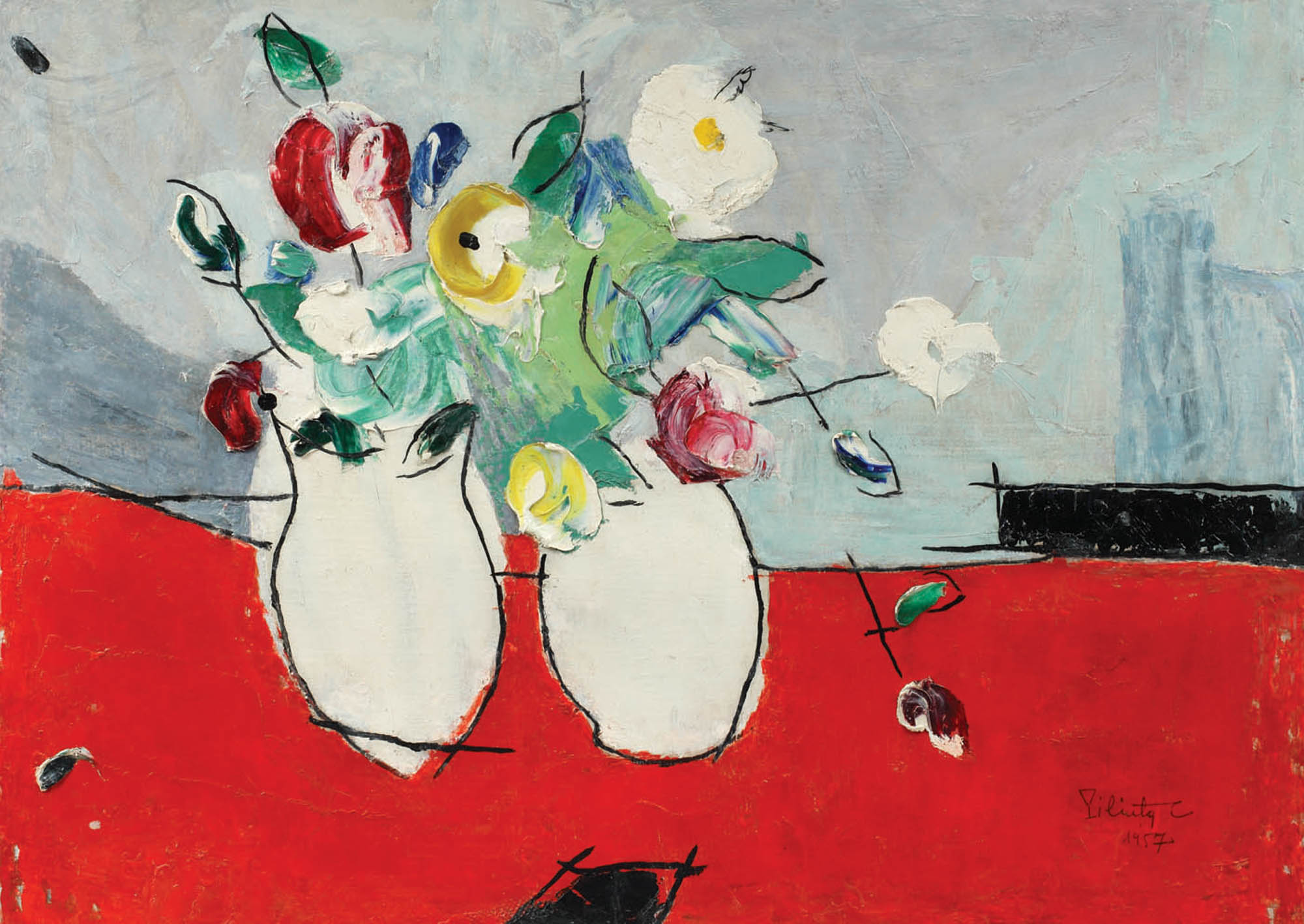 semnat şi datat dreapta jos, în creion, "Piliuţă C., 1957"
