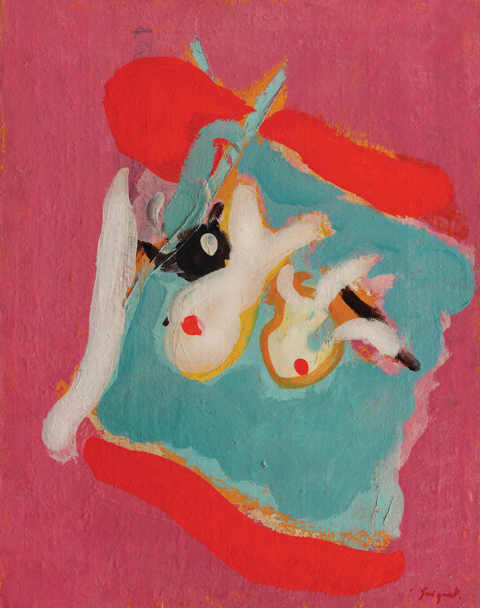 semnat dreapta jos, cu roşu, "Grigore.V"; semnat, datat şi intitulat pe verso, "Vasile Grigore, 1975, Peşti"