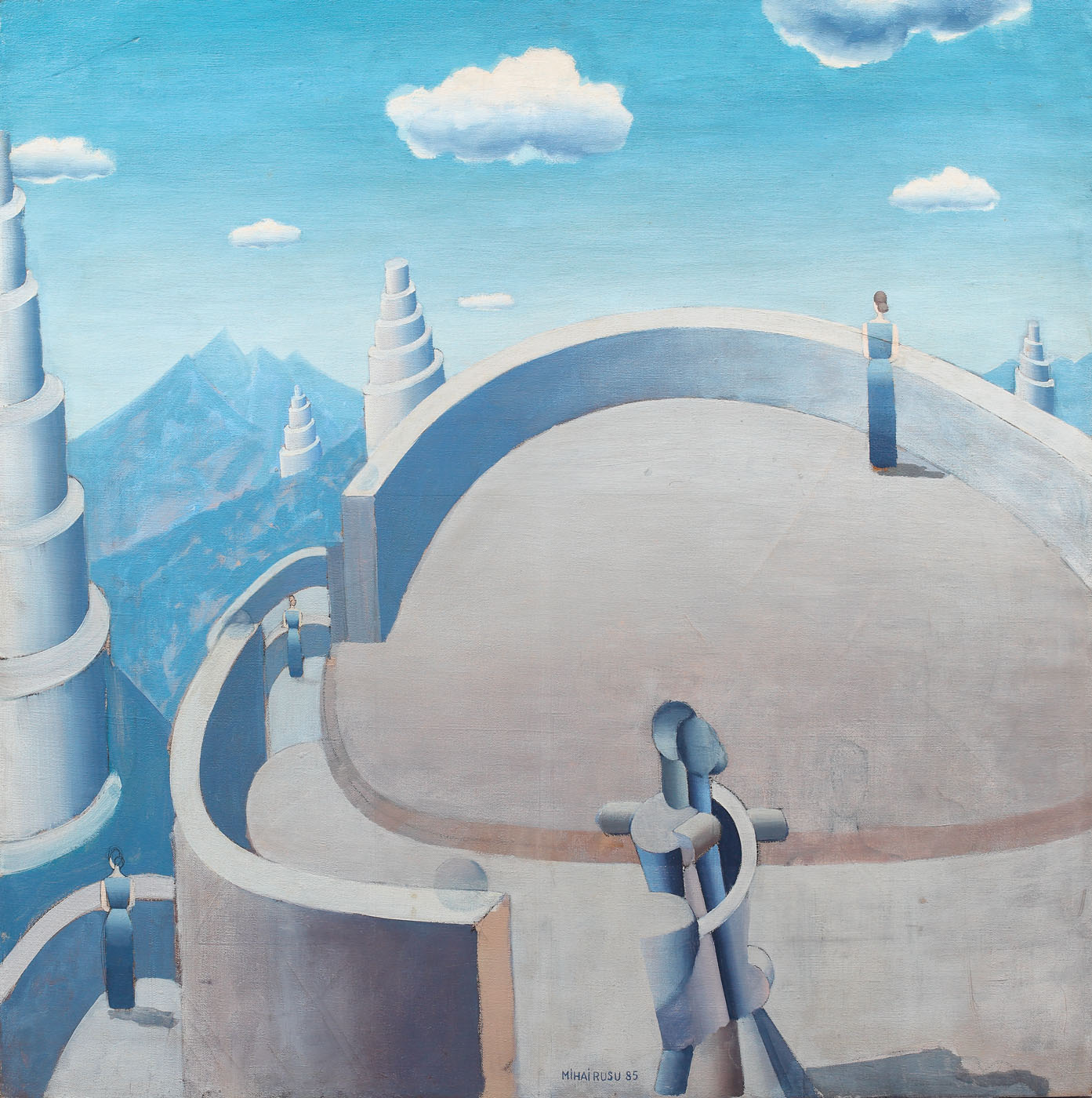 semnat şi datat central jos, cu albastru, "Mihai Rusu, (19)85"