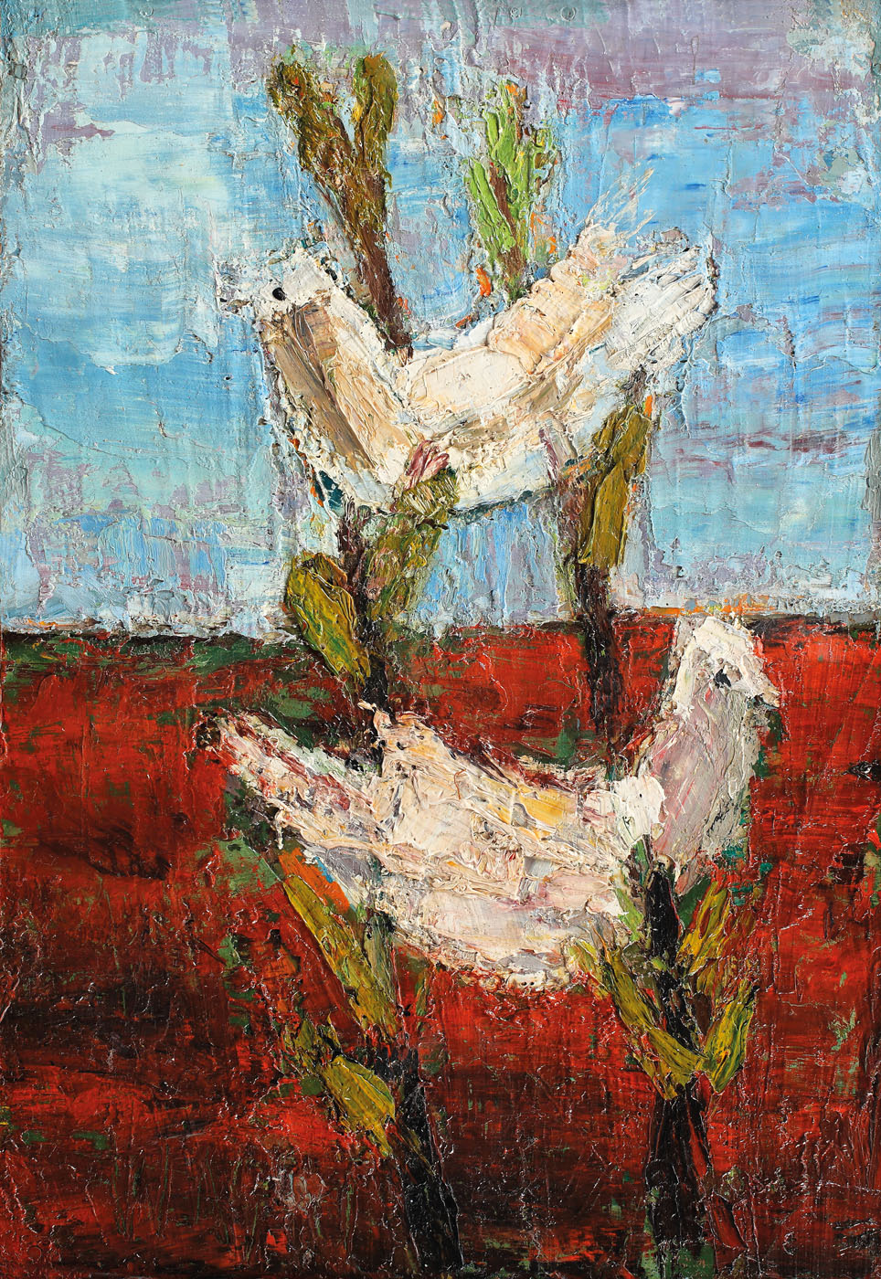 ulei pe carton lipit pe placaj