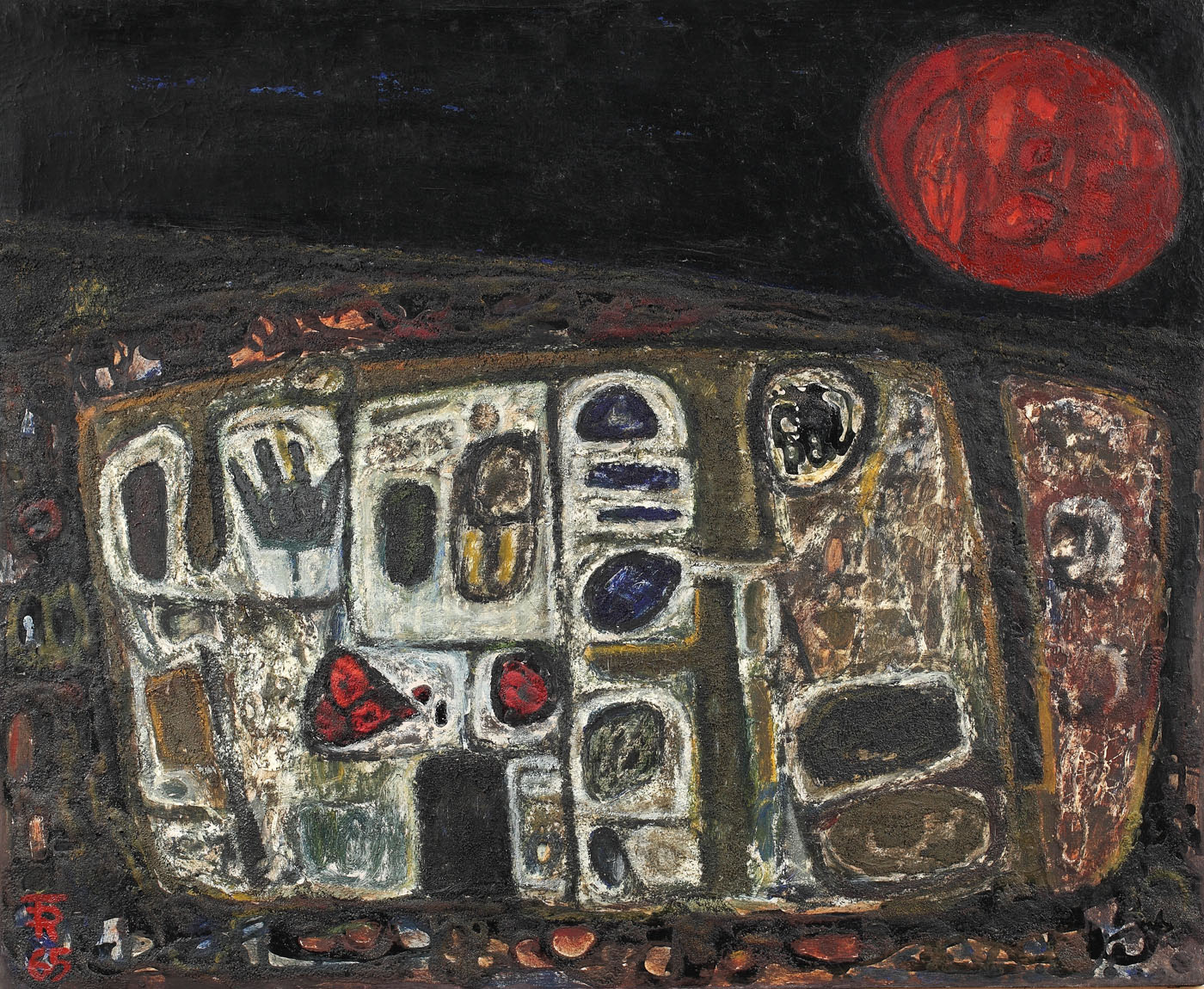 semnat şi datat stânga jos, cu roşu, "TR, (19(65)"