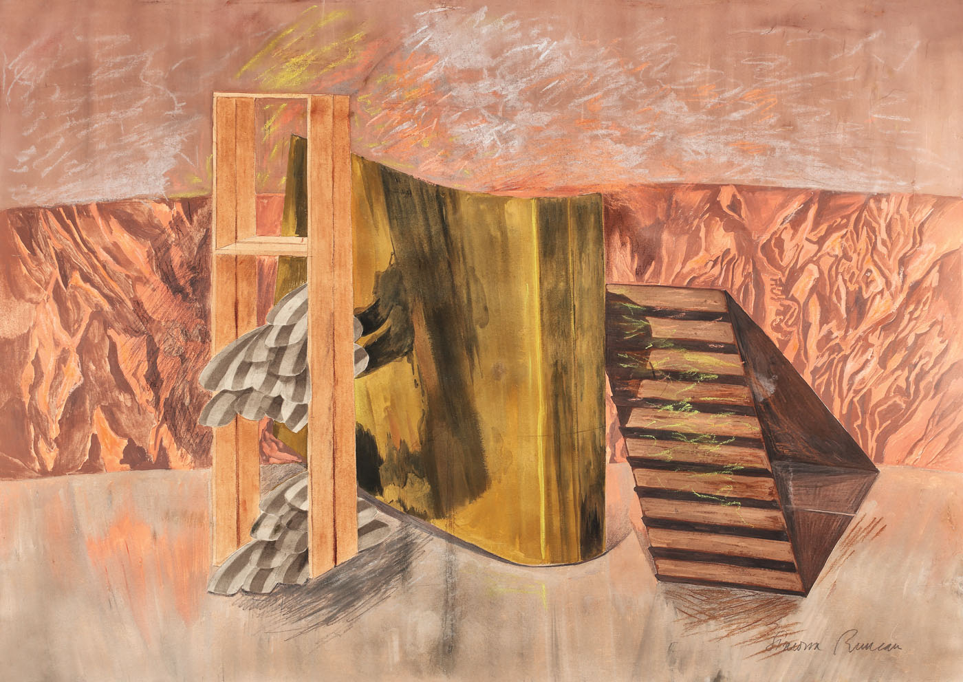 cerapastel, guaşă, creion şi acuarelă pe hârtie