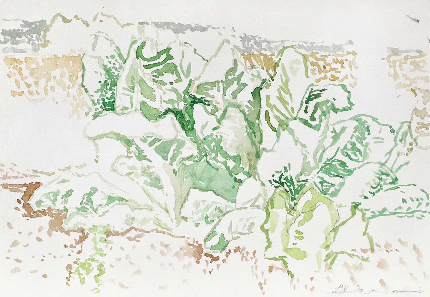 semnat dreapta jos, în creion, "P.G."; notat ilizibil dreapta jos