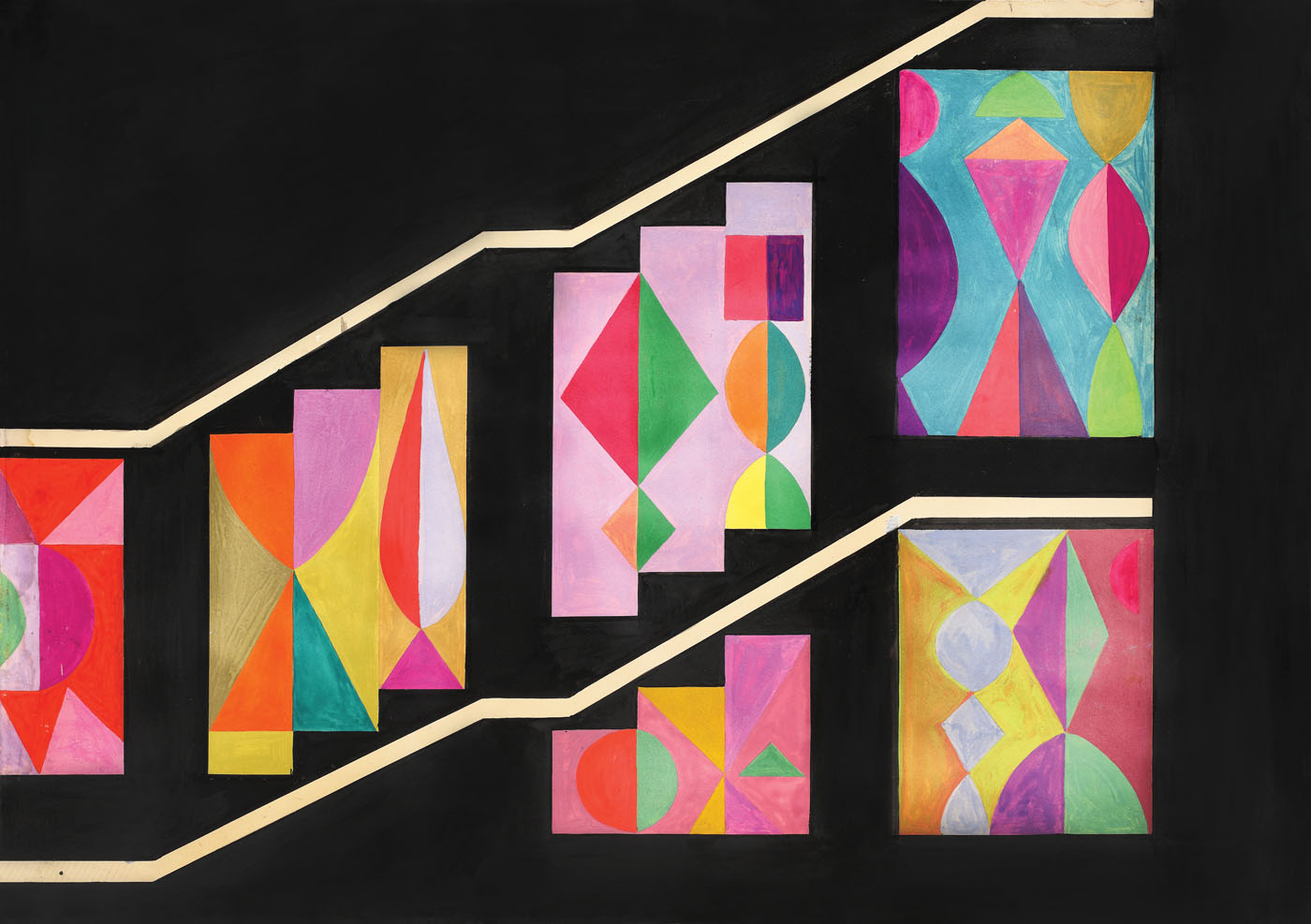 guașă vernisată pe hârtie lipită pe placaj