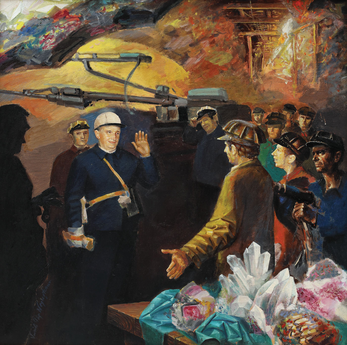 semnat stânga jos, cu albastru, "Vasile Pop Negreșteanu"; semnat, datat și intitulat pe verso, pe etichetă, "Vasile Pop Negreșteanu, Florile de mină, 1989"