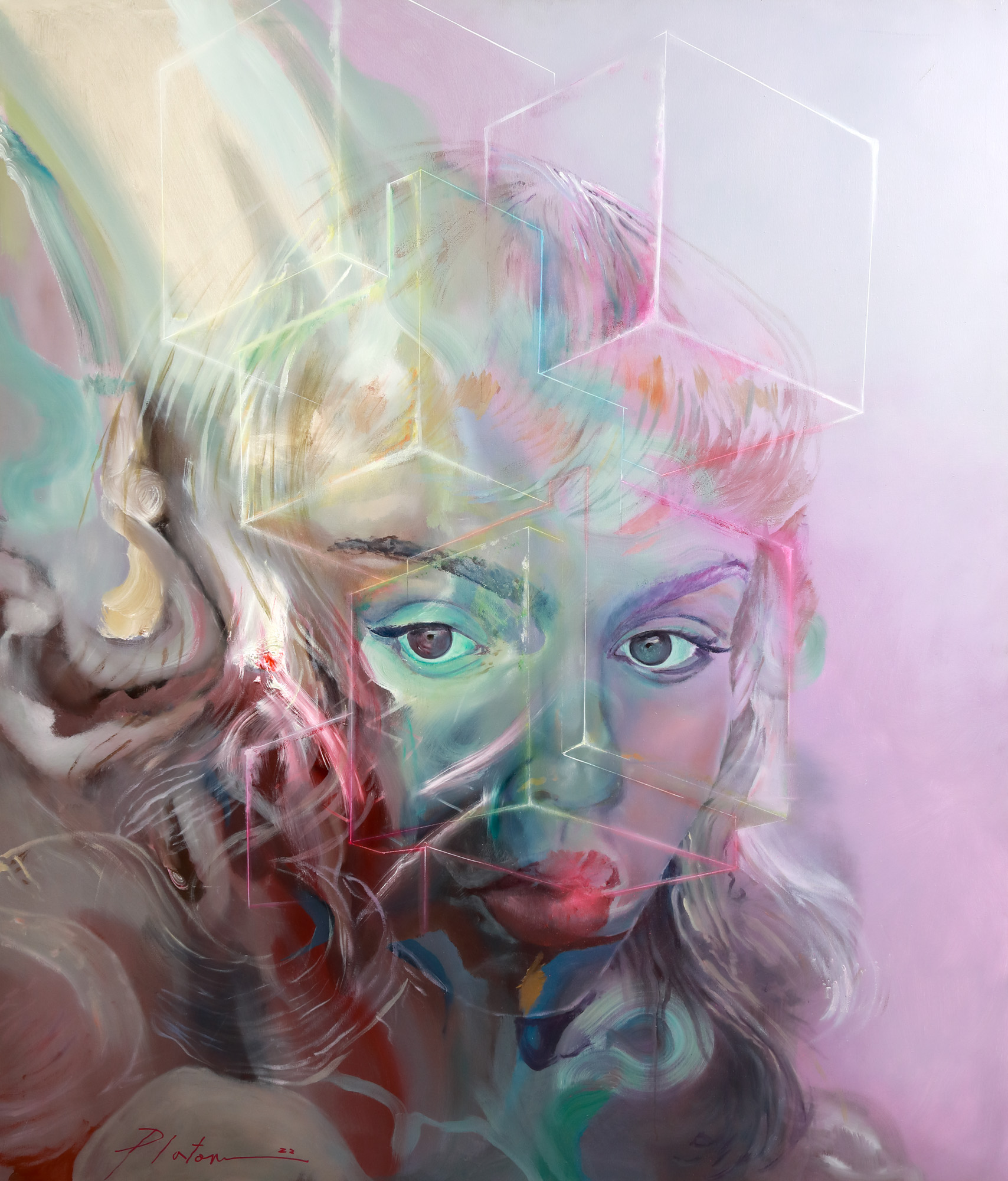 semnat și datat stânga jos, cu violet, "Platon, (20)22"