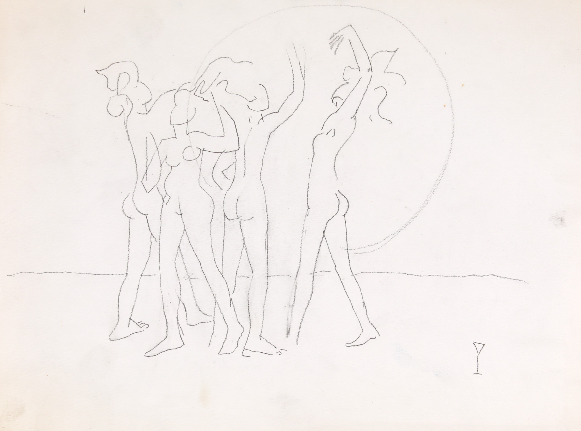 semnat dreapta jos, în creion, "P"
