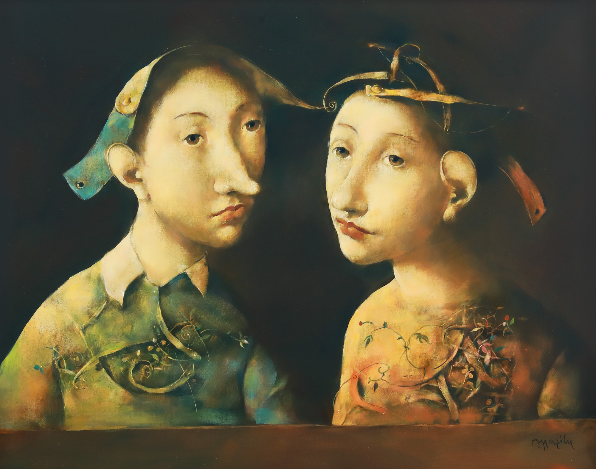 semnat dreapta jos, cu negru, ”Mazilu”; semnat și datat pe verso, cu negru, "Mazilu, Les fiancés"