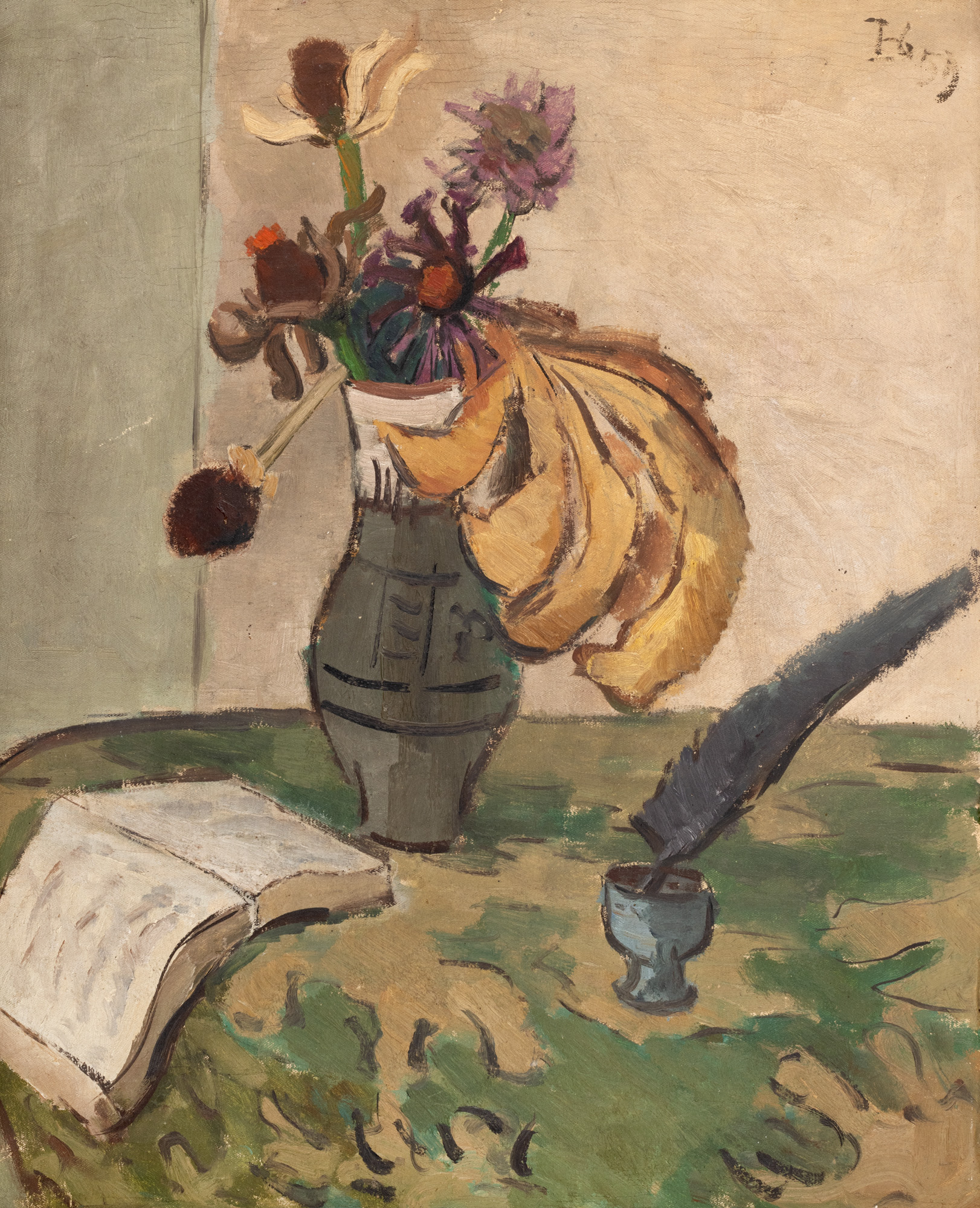 67. Carte deschisă, pană și scaieți [1959]