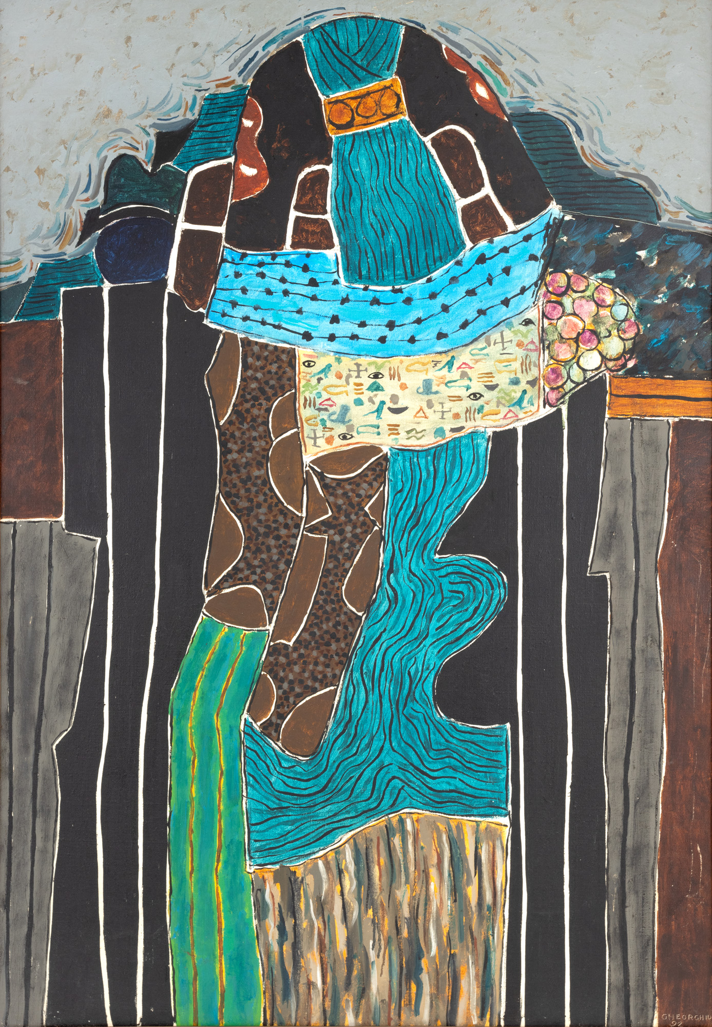 semnat și datat dreapta jos, prin zgrafiere, "GHEORGHIU, (19)92"