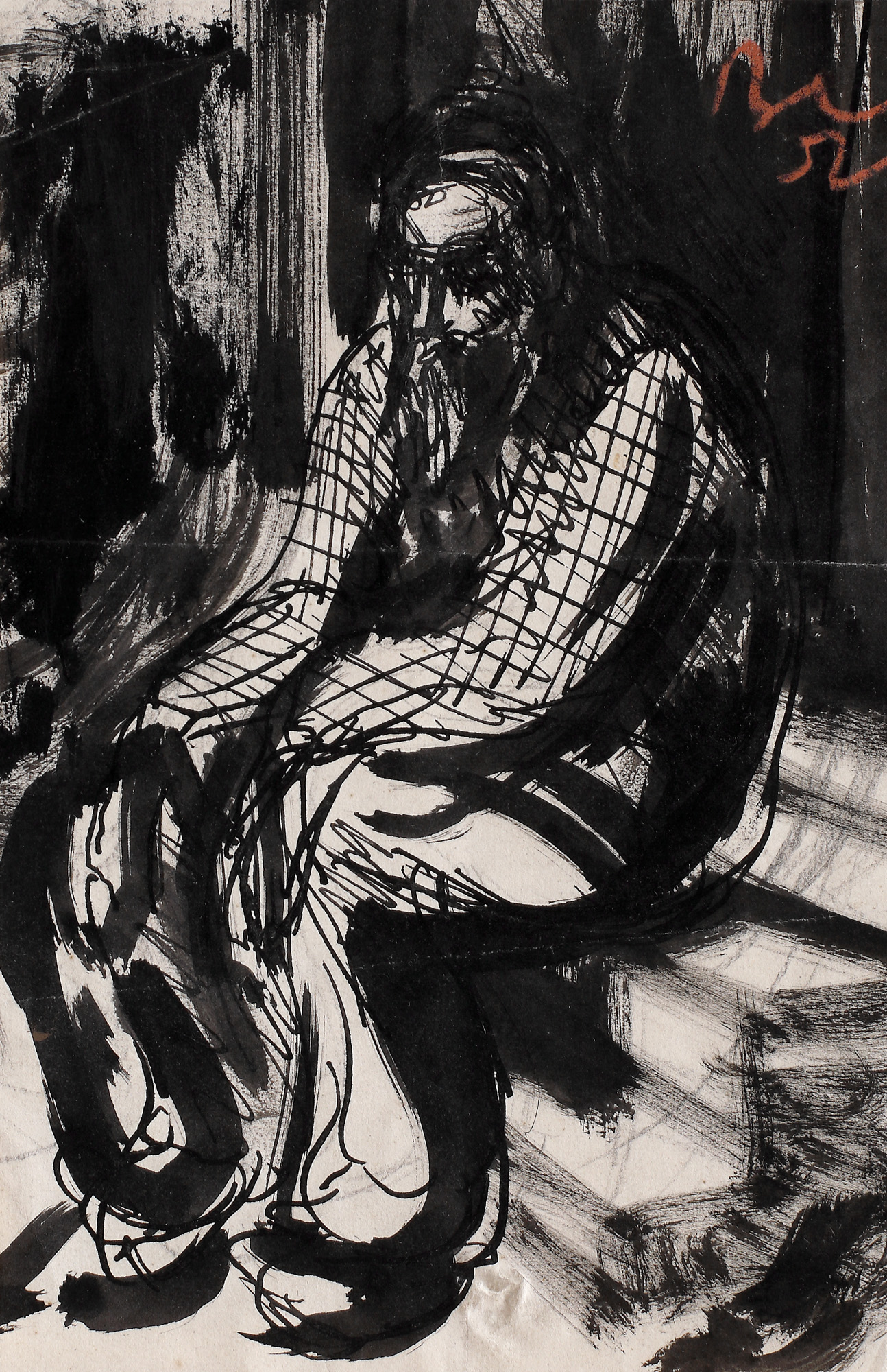 semnat și datat dreapta sus, cu roșu, "Baba, (19)52"