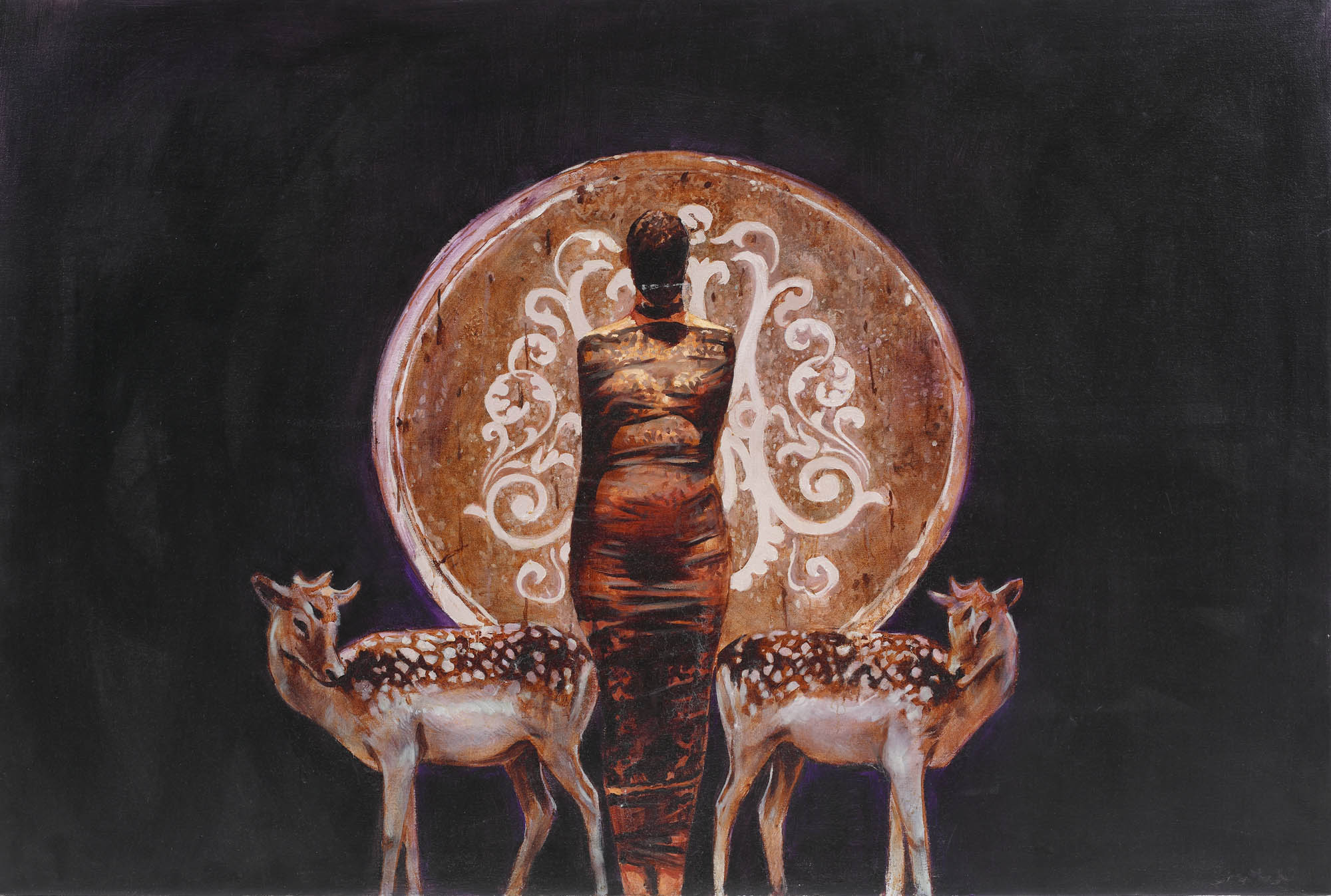 semnat dreapta jos, cu violet, "Fikl"; semnat, datat și intitulat pe verso, cu negru, "Gheorghe Fikl, Femeie cu dantelă, 2008"