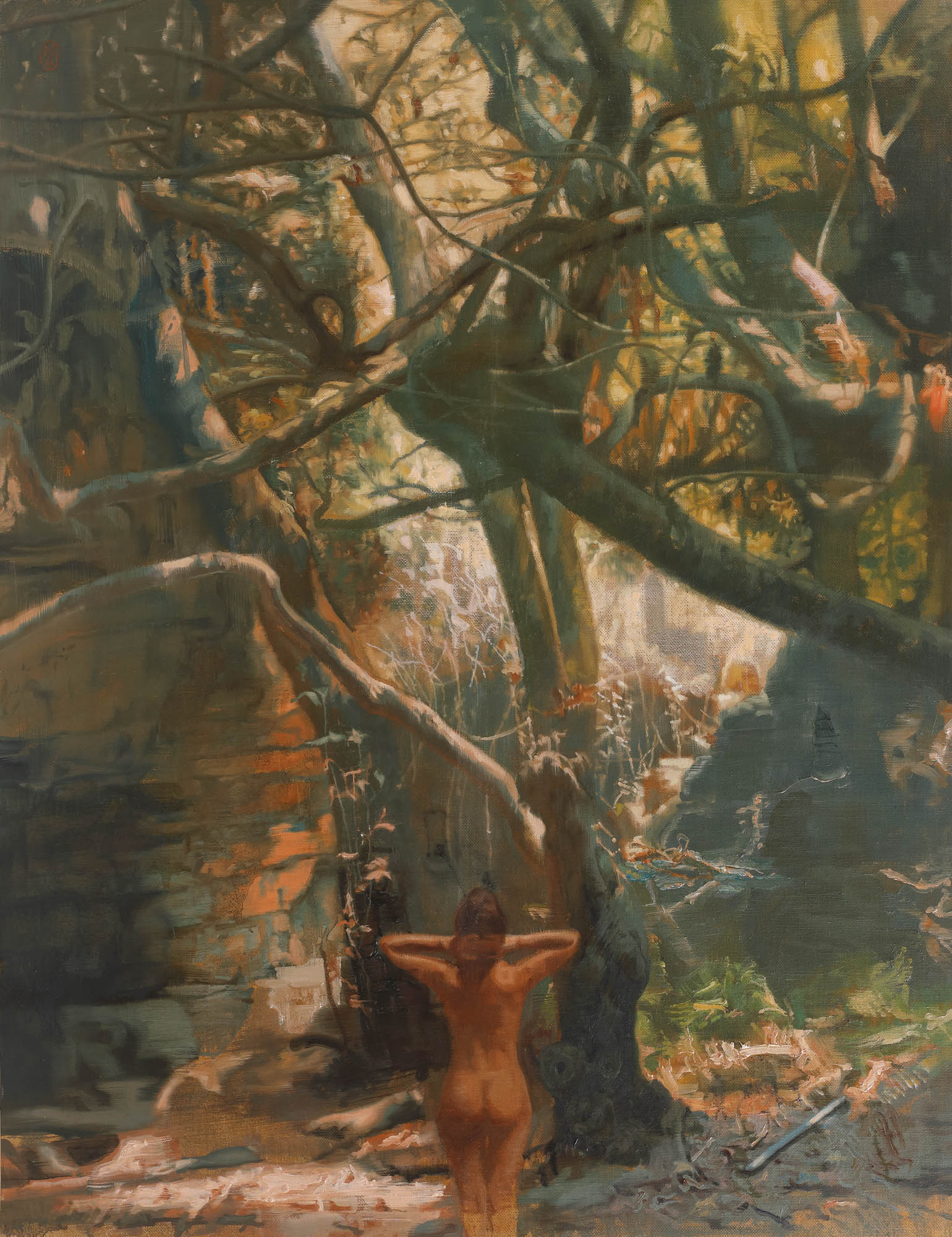 semnat și datat stânga sus, cu roșu, în monogramă, "MN, (20)09"