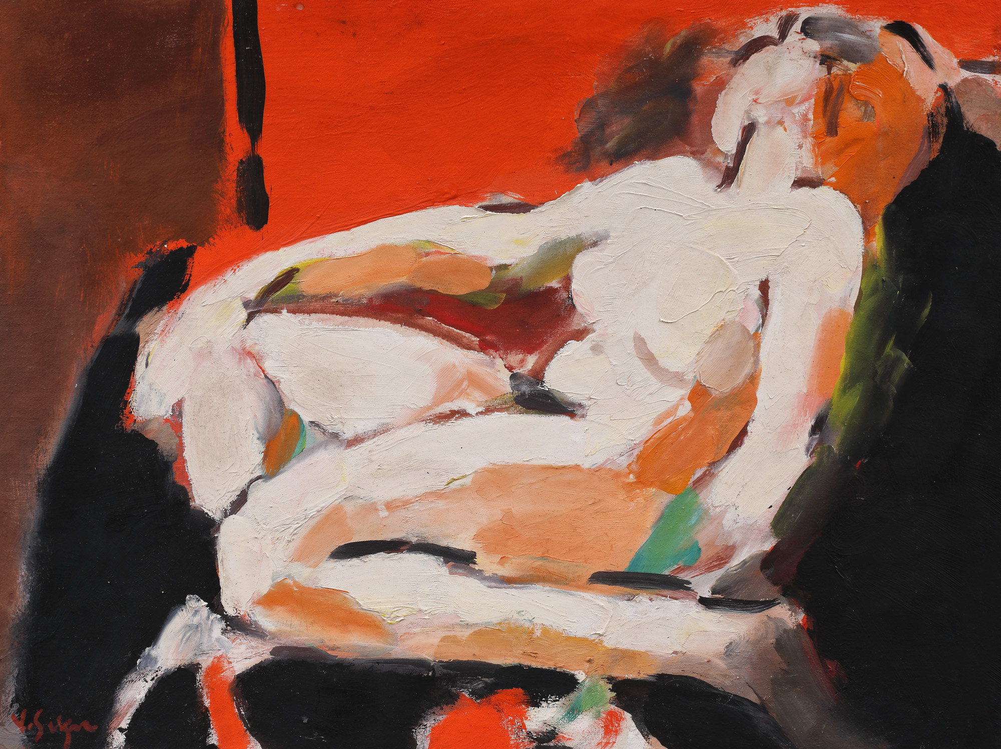 semnat stânga jos, cu roșu, "V. Grigore"
