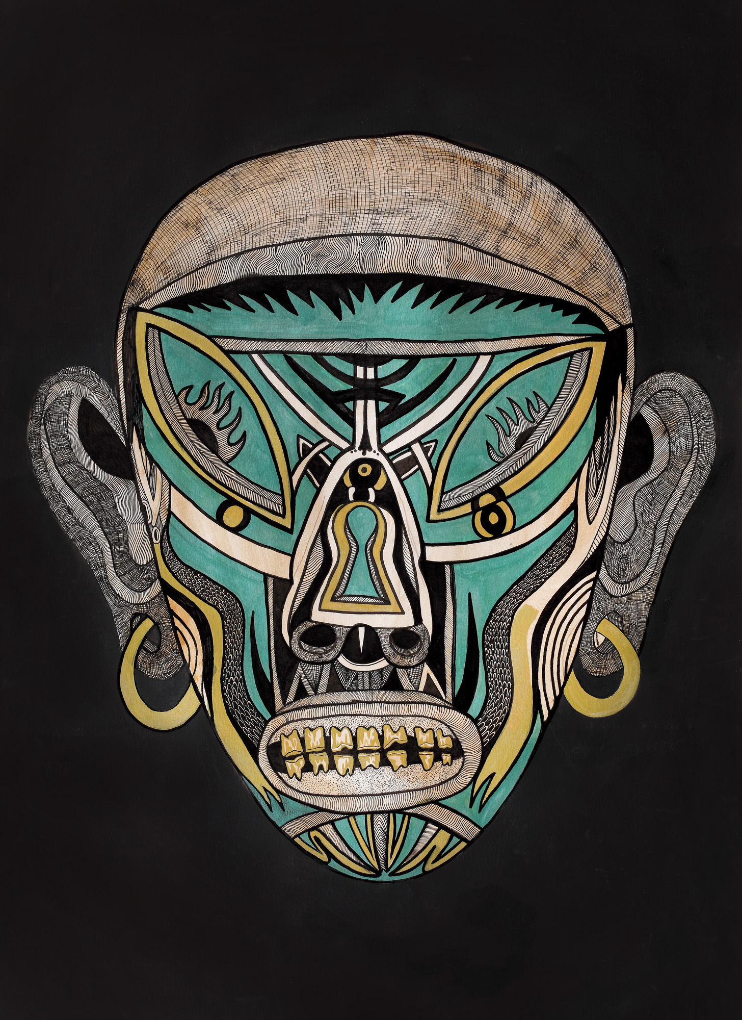 acrilic și tușuri colorate pe carton