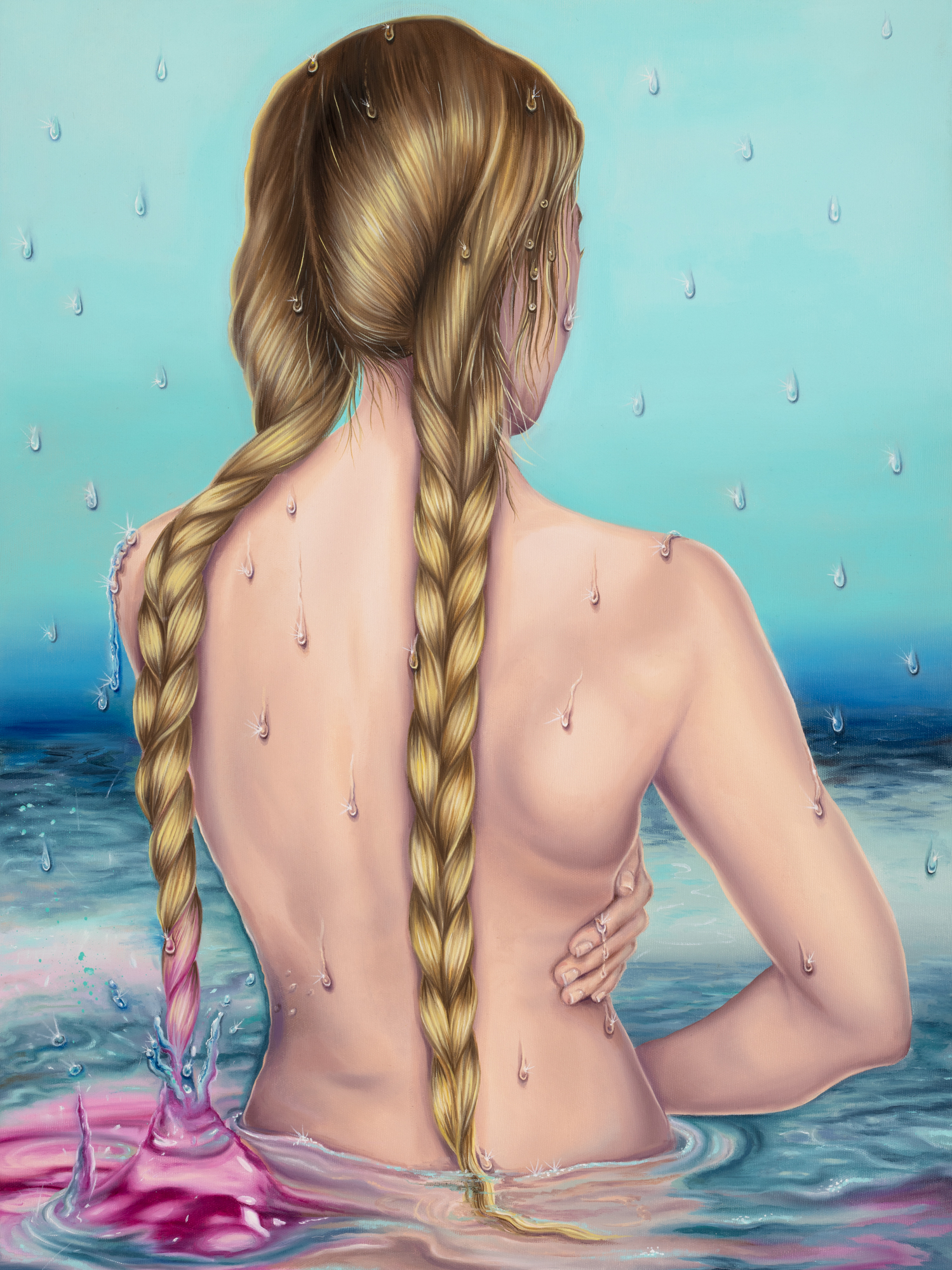 semnat, datat și intitulat pe verso, cu negru, "Arina Bican, Blending Rain, 2024"