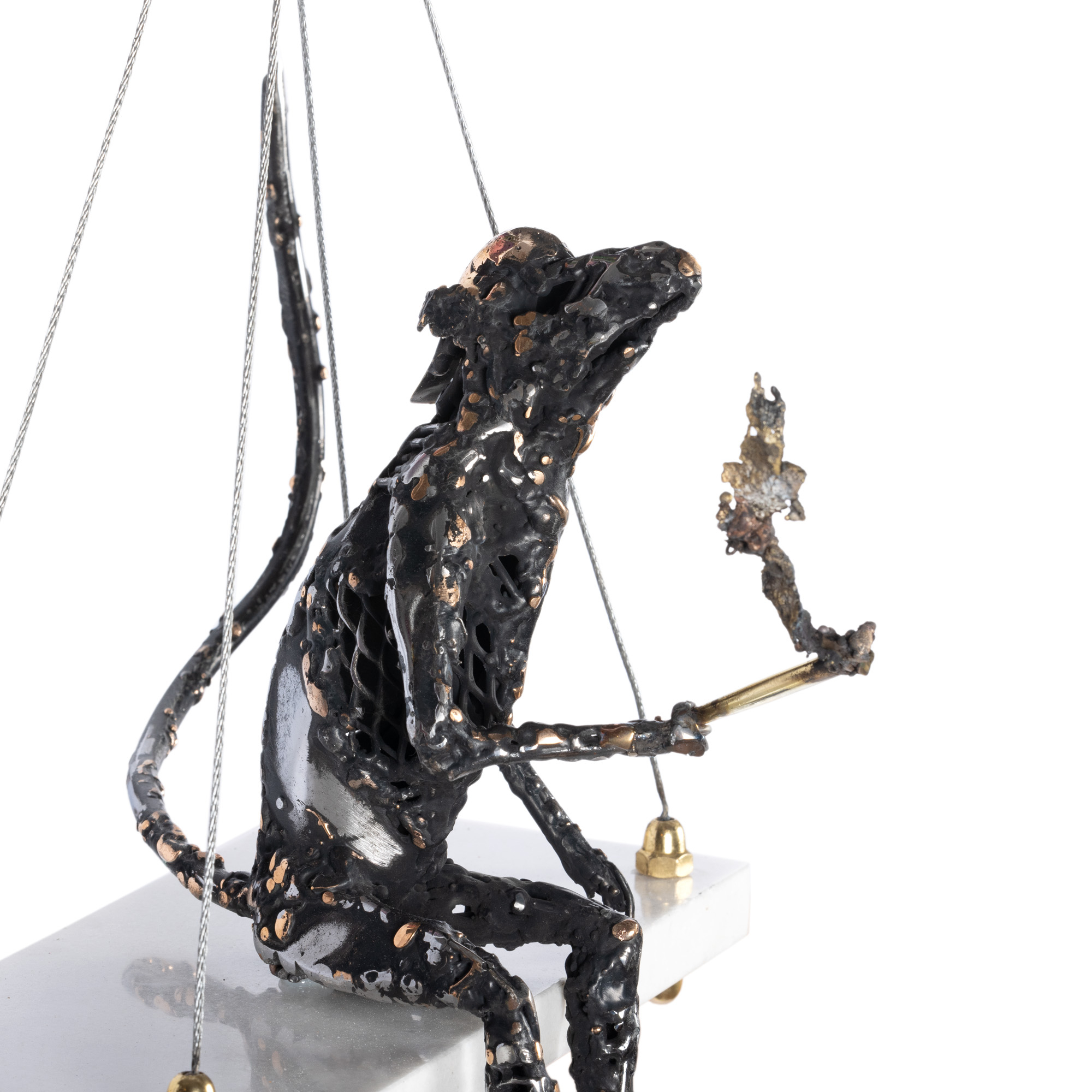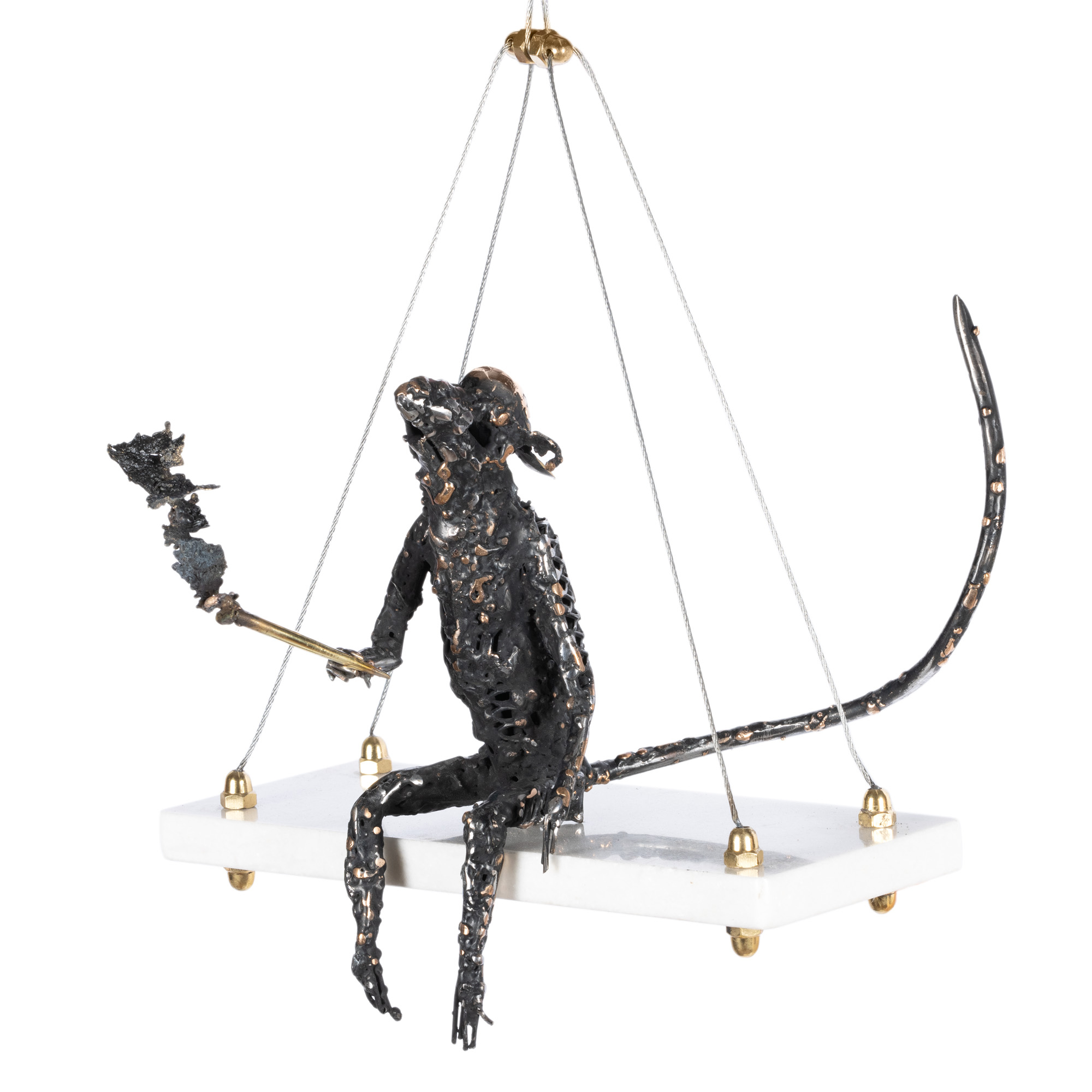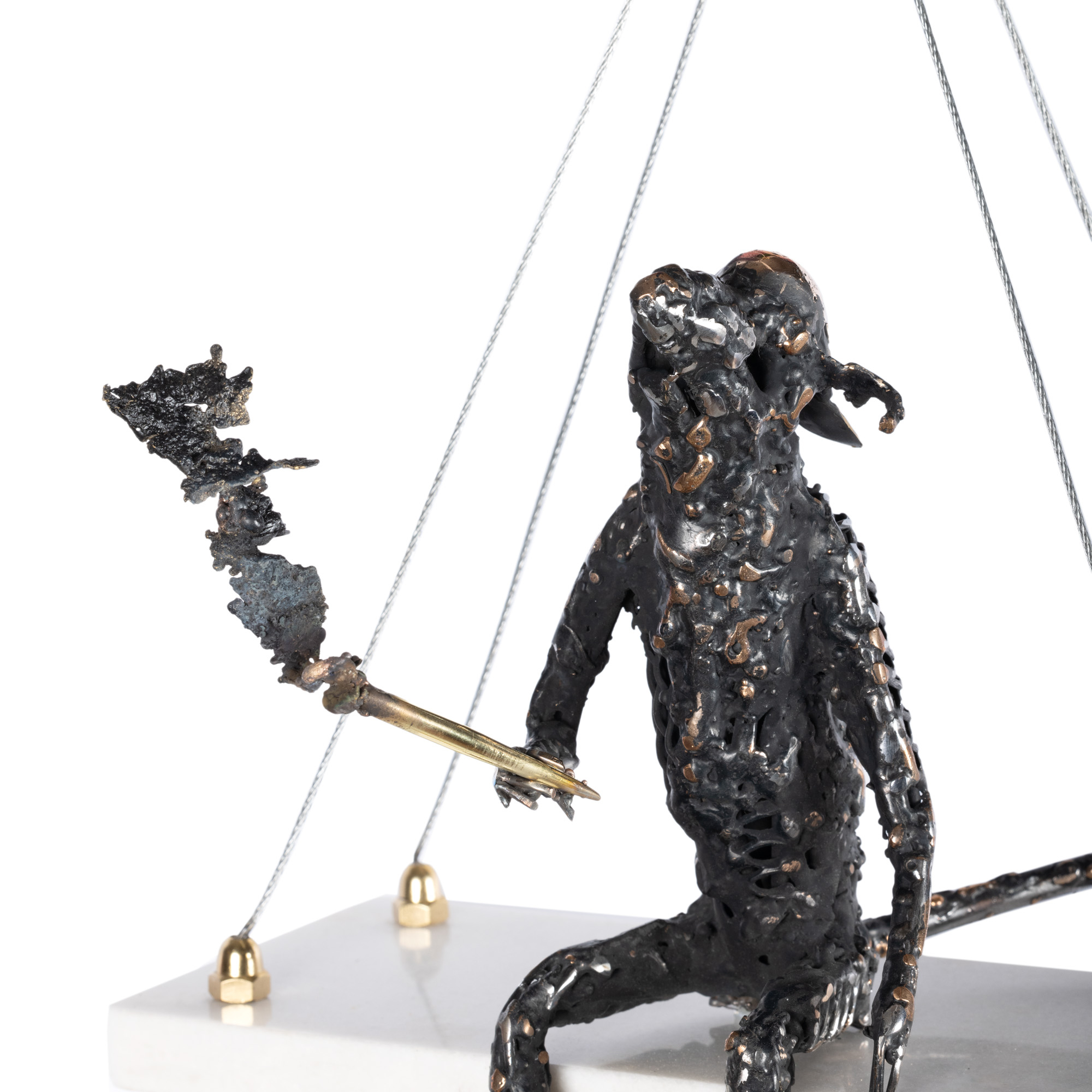 marmură, cablu de oțel, bronz și alamă