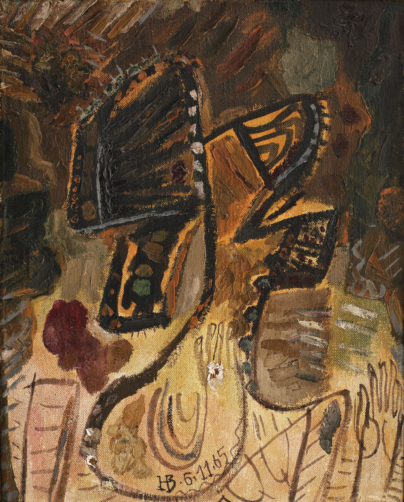 semnat şi datat central jos, cu brun, "H.B., 6.11.(19)65"