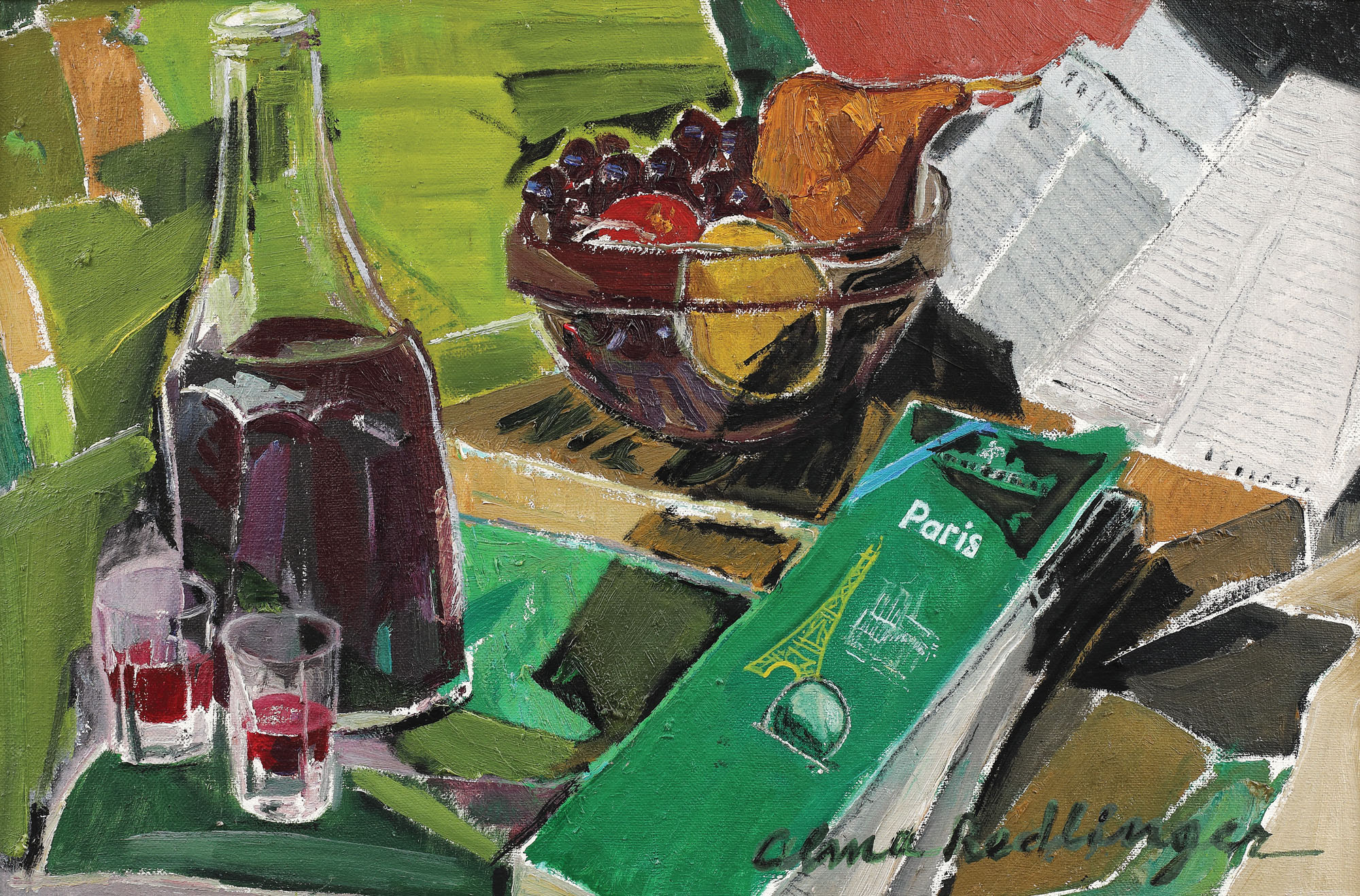 semnat dreapta jos, cu negru şi verde, "Alma Redlinger"