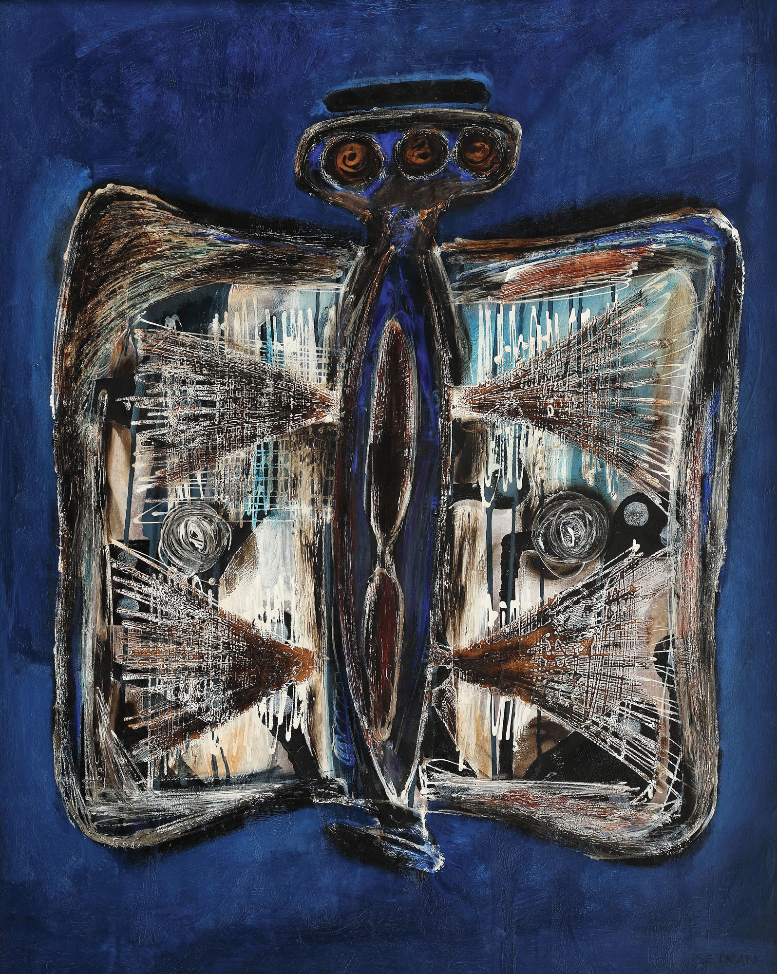 semnat dreapa jos, cu negru, "Șetran"; semnat și intitulat pe verso, cu negru, "Vladimir Șetran, Lepidopter"