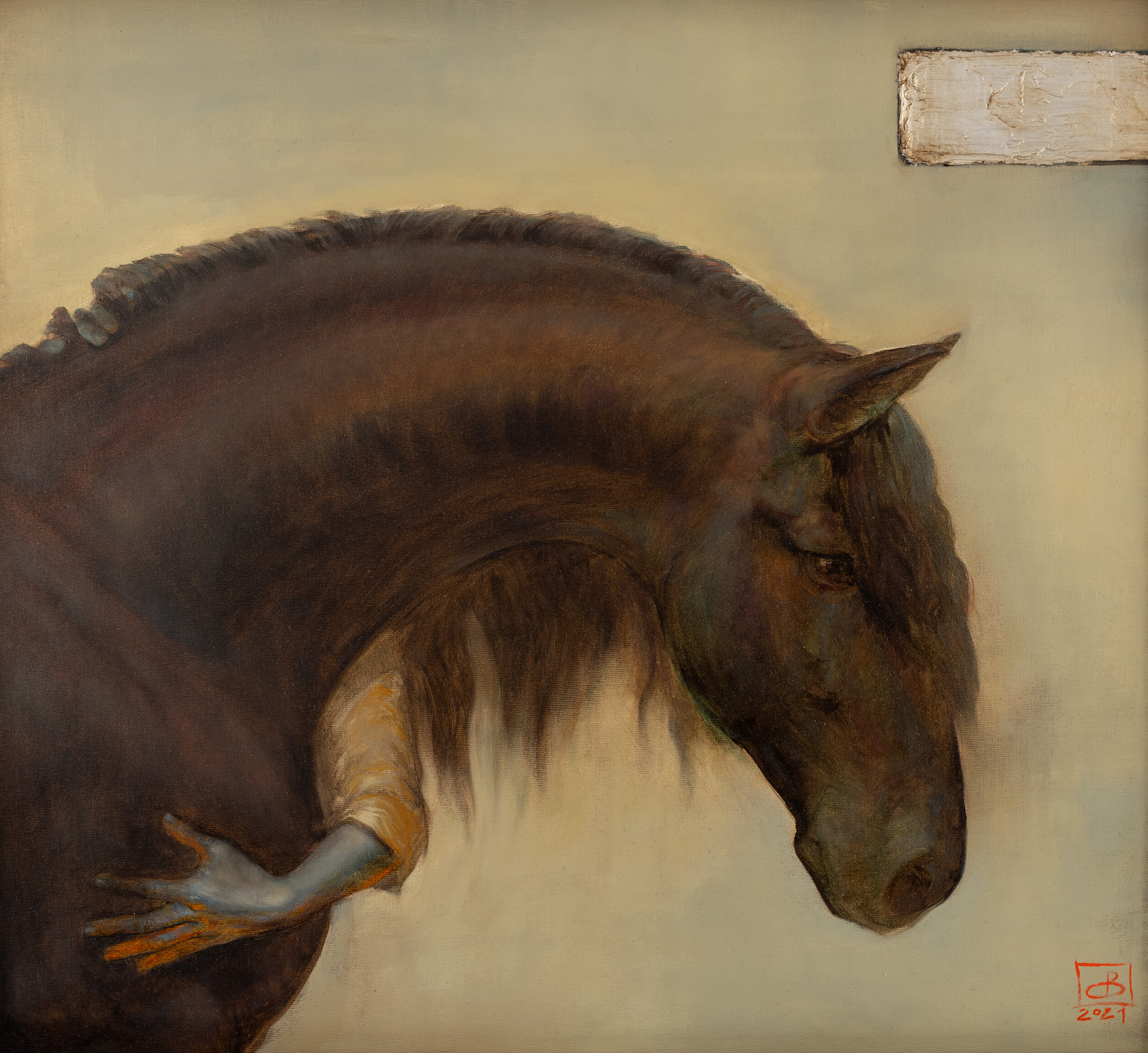 semnat și datat dreapta jos, cu roșu, „AB, 2021"