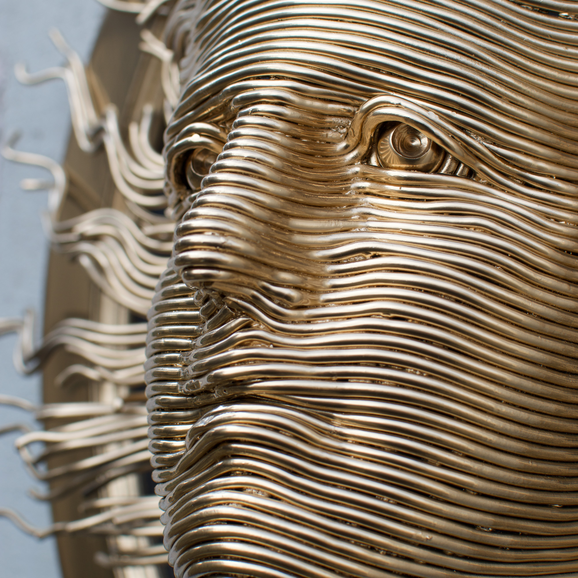 altorelief, parietal, realizată din sârmă moale (OLC 4mm), montat pe o placă de oțel și o ramă de lemn vopsite în ral BLK400 GOLD CROME
