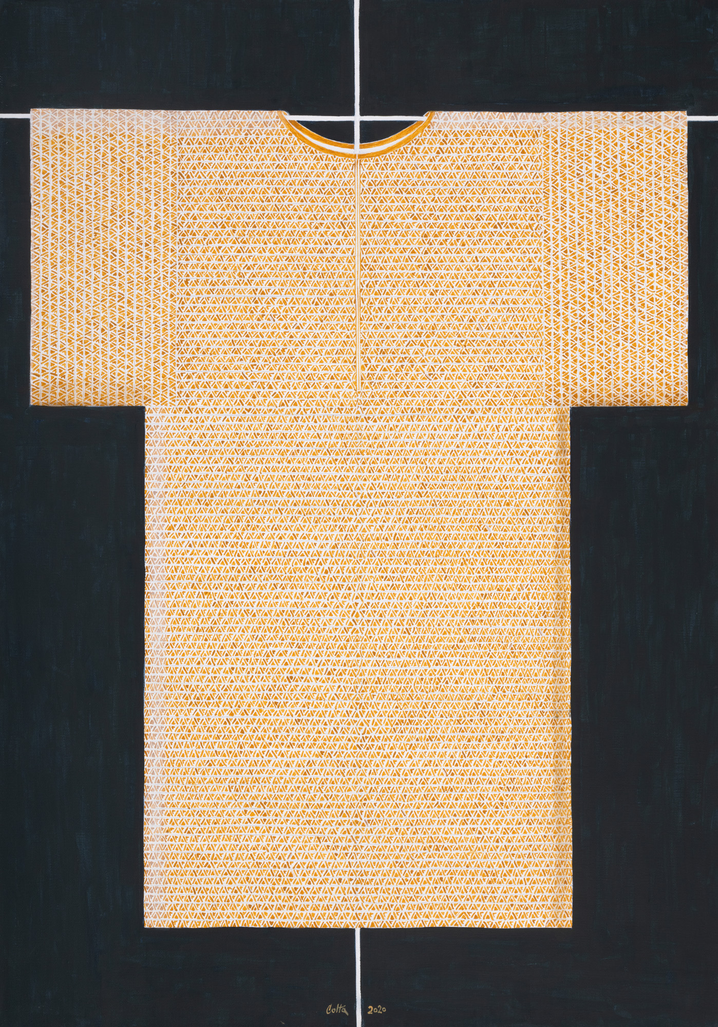semnat și datat central jos, cu ocru, "Colta, 2020"; semnat, datat și intitulat pe verso, cu negru, "Onisim Colta, Fagure, 2020"