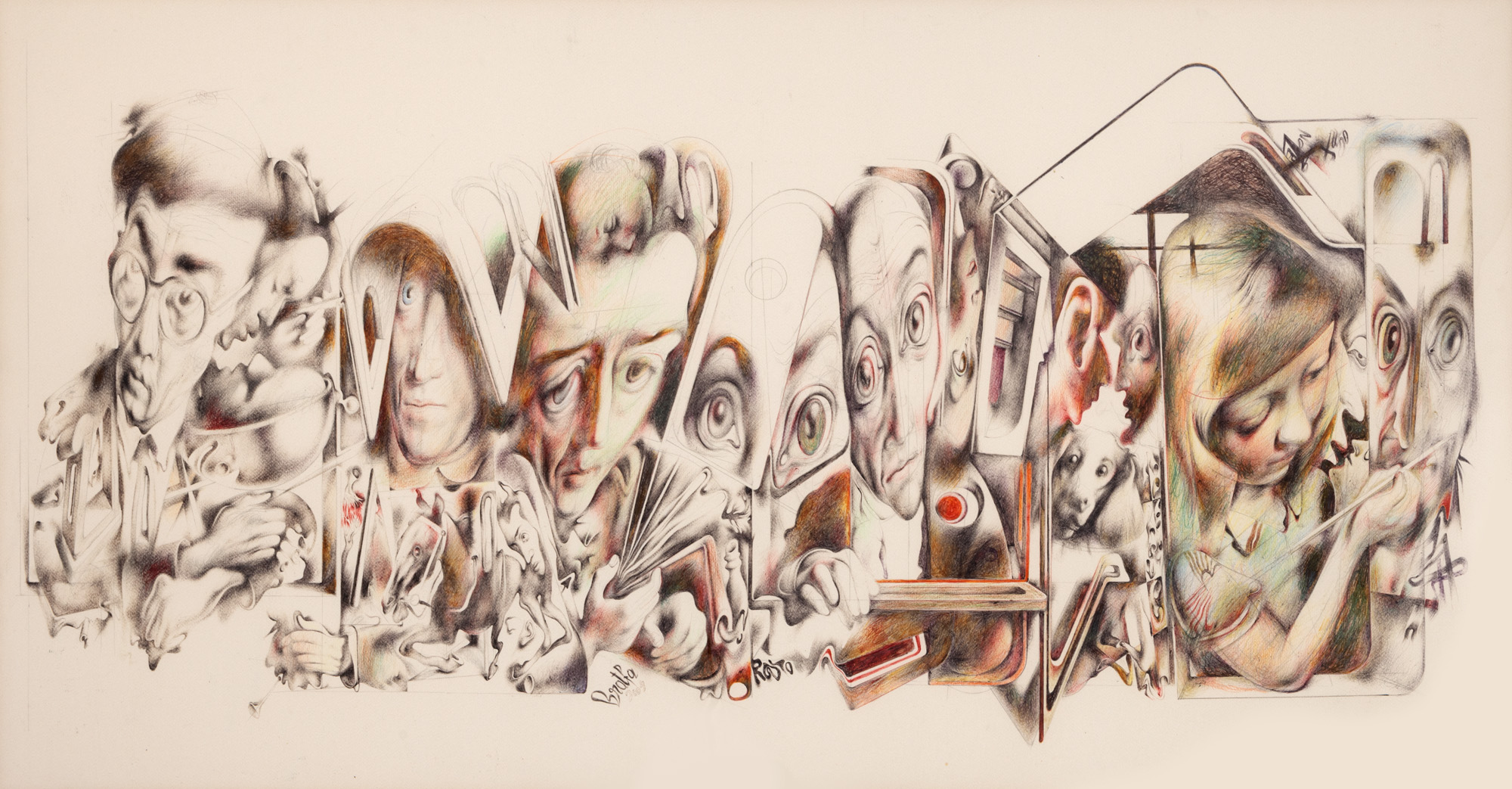 semnat și datat central jos, în creioane colorate, "Bratfa, 2009"