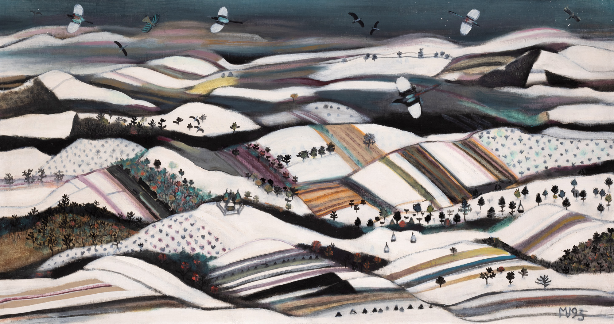 semnat și datat dreapta jos, cu negru, "MV, (19)95"