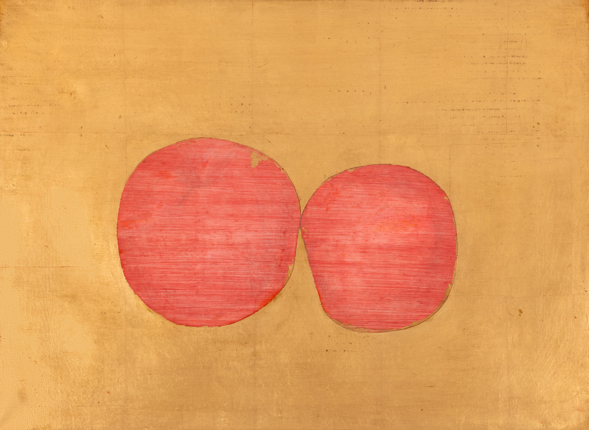foiță de aur, creion și guașă pe pânză