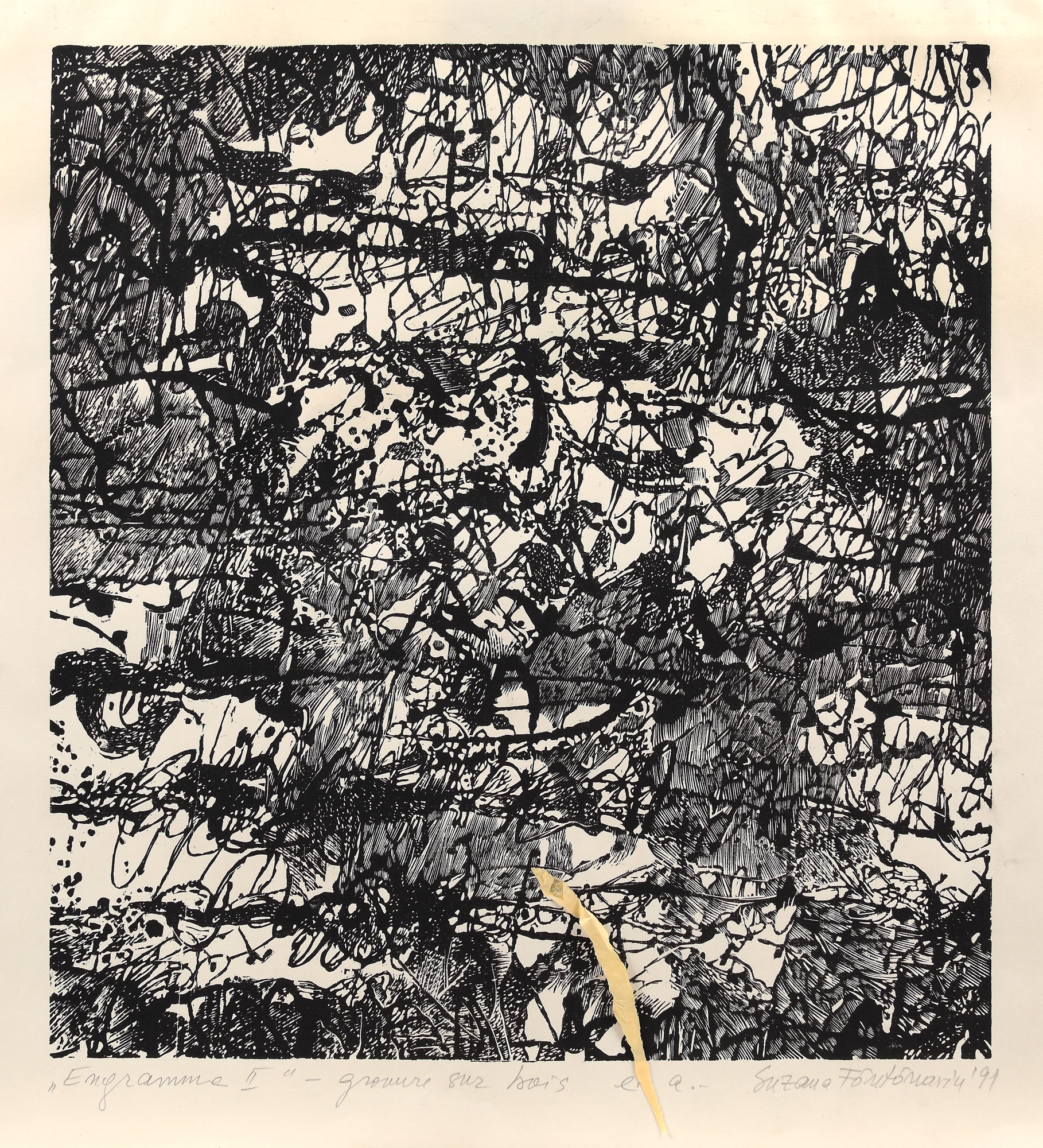 semnat, datat, intitulat și notat central jos, în creion, "Suzana Fântânariu, (19)91, Engramme II, e.a"