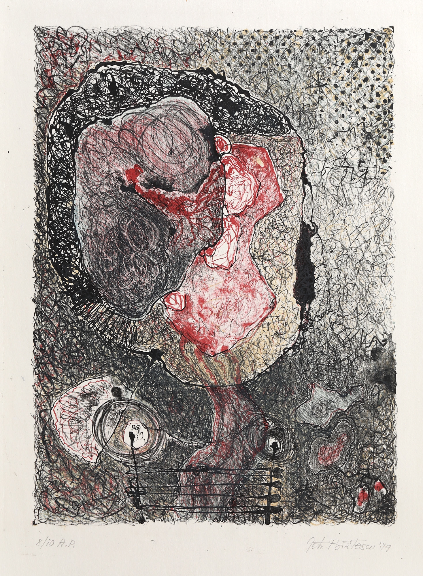 semnat și datat dreapta jos, în creion, "Geta Brătescu, (19)79"; numerotat și notat stânga jos, în creion, "8/50, E.A" (fiecare)