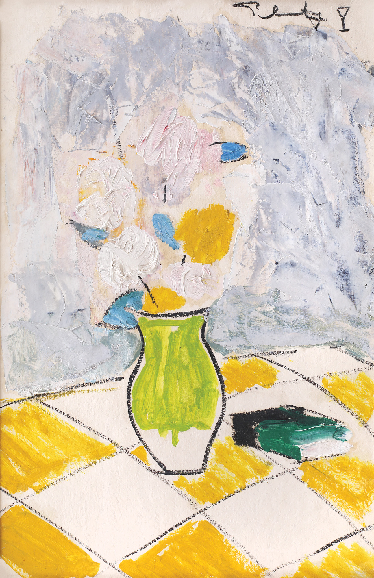 semnat dreapta sus, cu negru, în monogramă, "Piliuță"