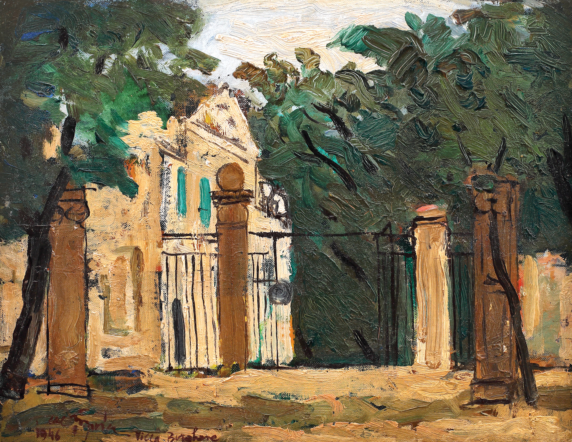 semnat, datat și intitulat stânga jos, cu brun, "Al. Țipoia, 1946, Villa Borghese"