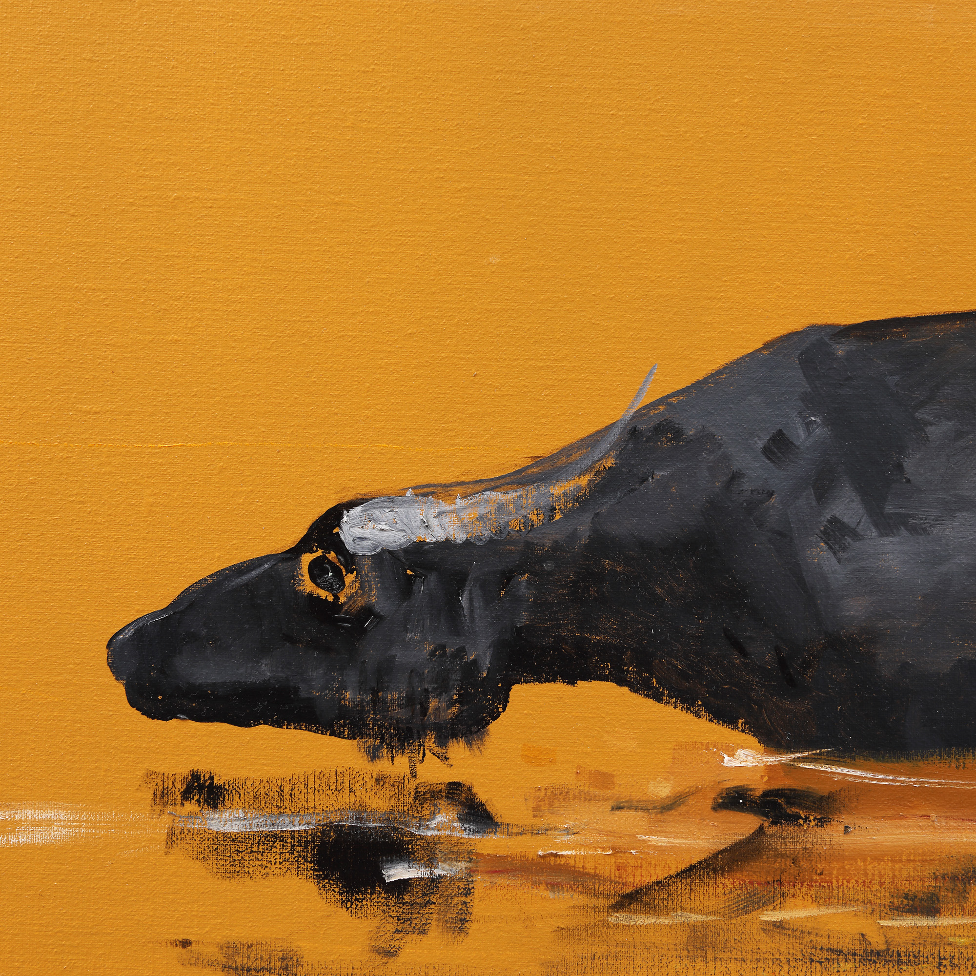 Deseori asociate cuvântului "fantastic", lucrările lui Ștefan Câlția creează mai degrabă o atmosferă anistorică, inundată de duhul divin și de o lumină inefabilă. Cerul este pânza de lucru a autorului. Personajele, obiectele, ființele necuvântătoare sunt concepute după legile naturii sau contextului în care sunt plasate. Incompatibilitatea violentă este doar de suprafață, ea este de fapt controlată din dorința de a epata, de a uimi. Personajul, această crăiasă, este suprinsă, asemenea majorității personajelor lui Ștefan Câția, levitând. Nu întâmplător această figură hieratică, asemenea unui înger, plutește peste spațiul mundan, răspândind visarea și jucând rolul unui martor al veșniciei. Florile purtate de aceasta capătă rolul unei ofrande. Cu rol protector pentru această craiasă, în lucrarea noastră bivolul este el însuși un personaj, traversând un ochi de apă. Dincolo de simbolul puterii, bivolul mai este și un simbol al belșugului și al recoltei bogate. În scrierile budiste, acesta este un considerat un animal sacru care are puterea de a transforma toate dorințele în realitate. Aflați împreună într-o călătorie inițiatică, crăiasa și bivolul conturează arhitectura unei lumi cosmice, unde totul este mângâiat și protejat de lumina divină, de rugăciunea și faptele oamenilor.