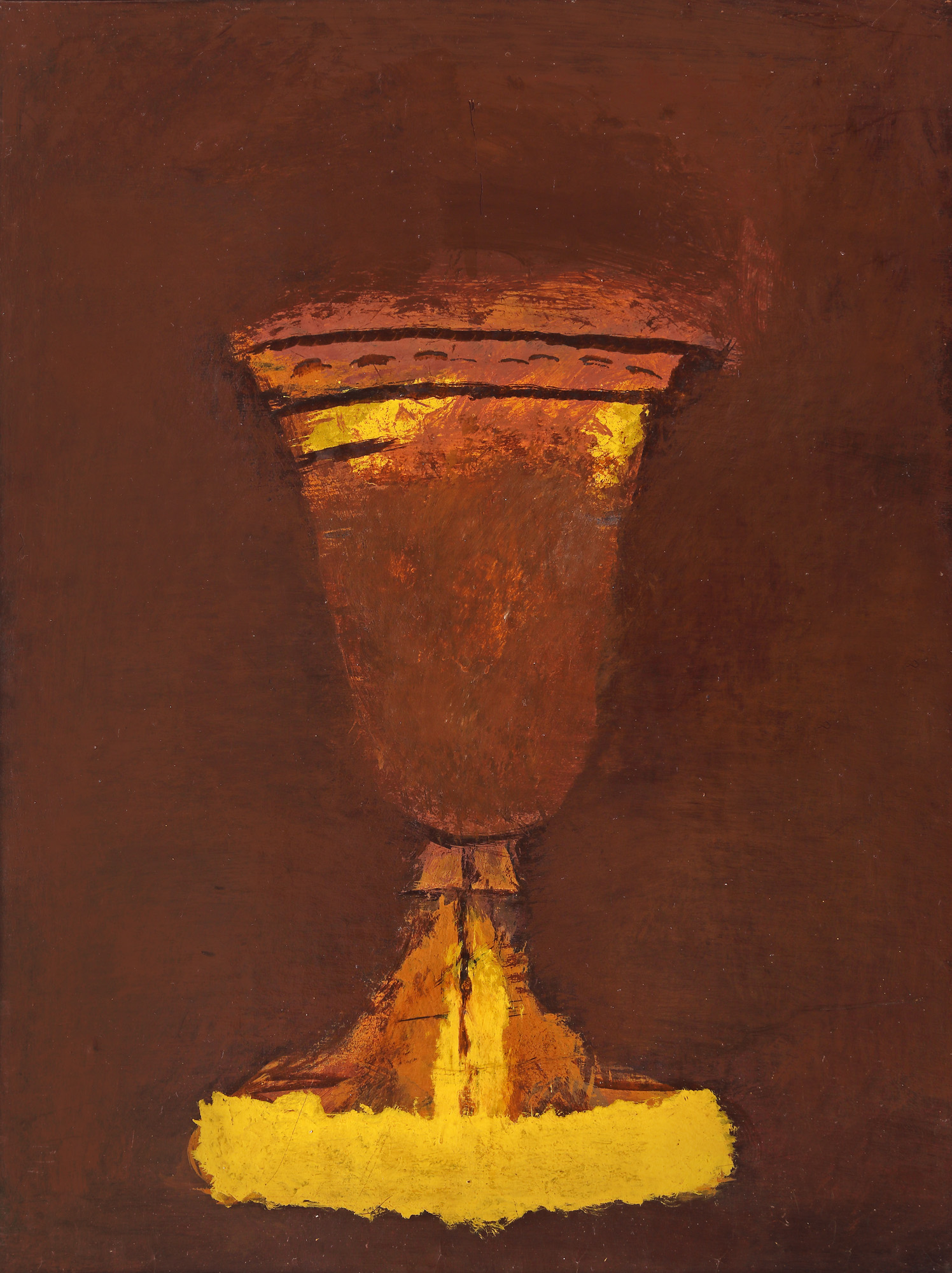 semnat și datat dreapta jos, în creion, "fm, (1)974"; semnat, datat și intitulat pe verso, cu negru, "Florin Mitroi, Potir, 1974"