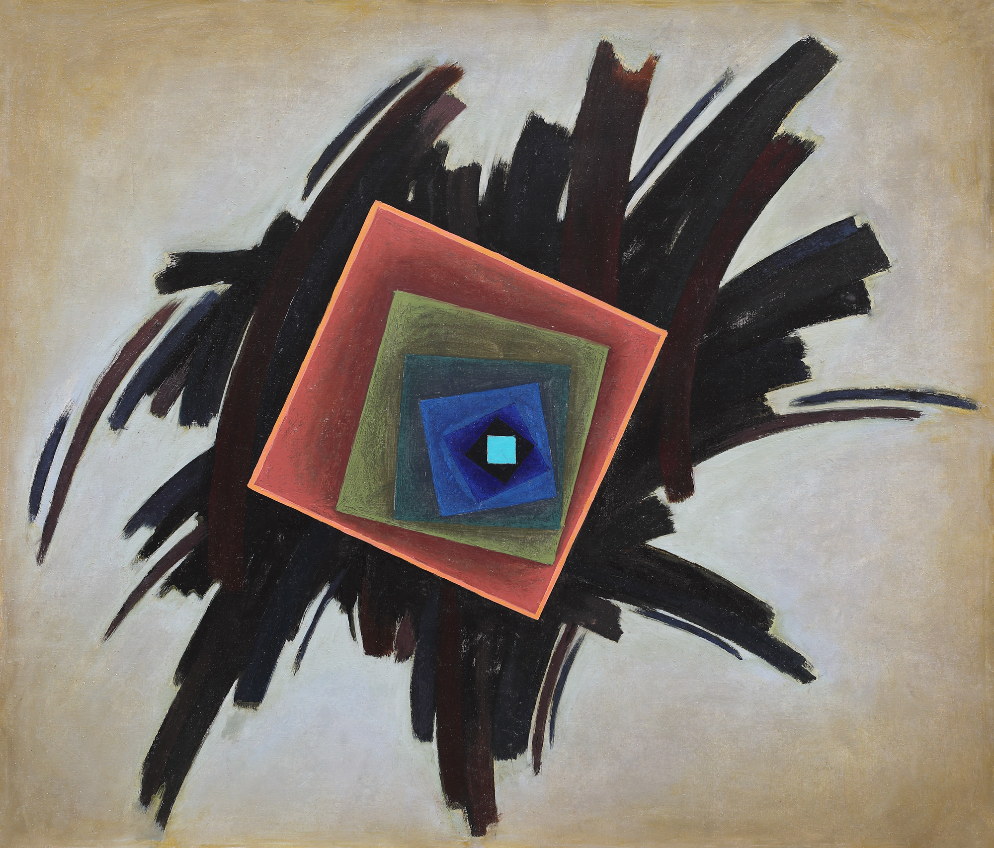 semnat și intitulat pe verso, cu negru, "Gheorghe Firică. Cădere în albastru"