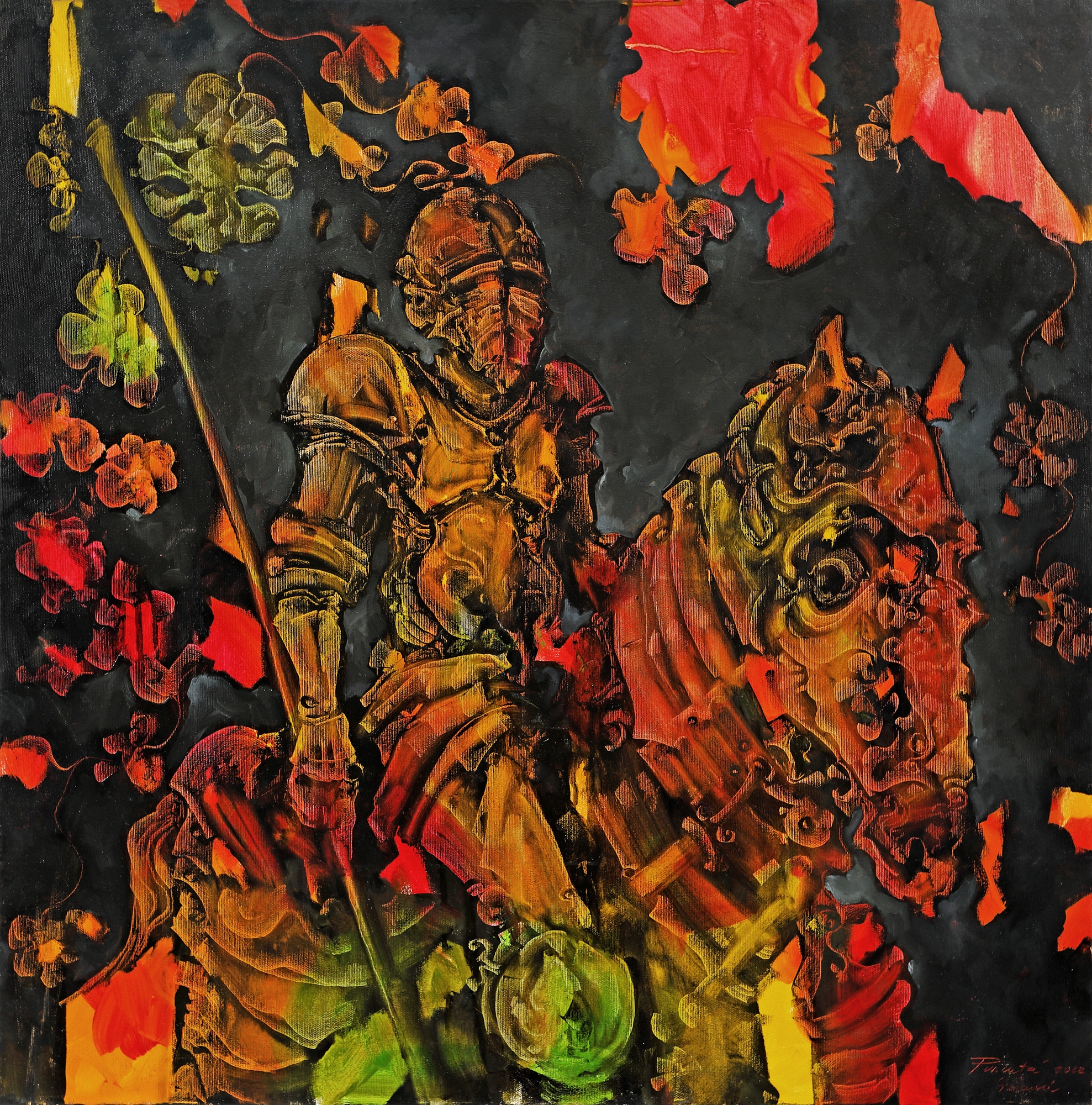 semnat, datat și localizat dreapta jos cu roșu, "Pușcuță, Tescani, 2022"
