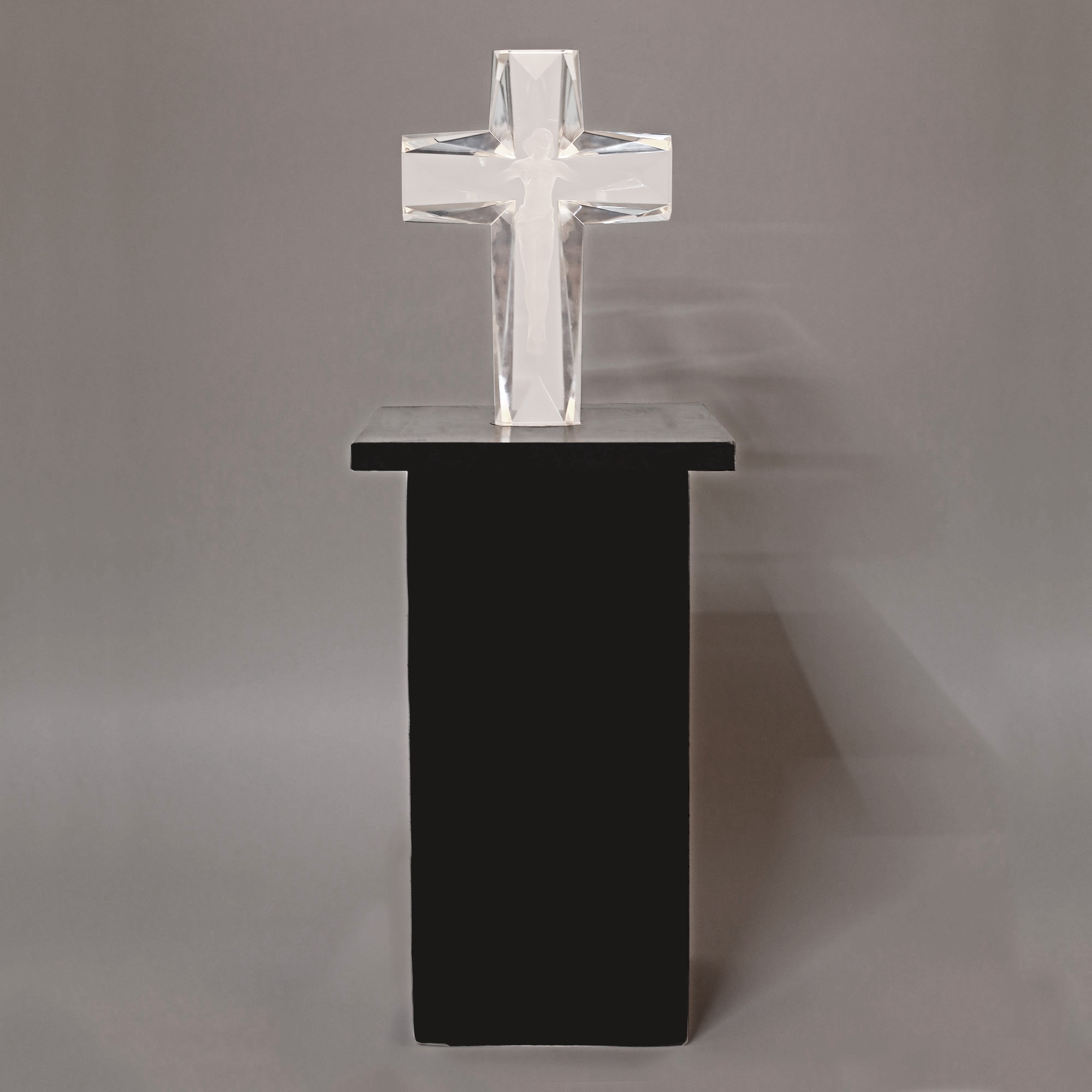 rășină acrilică transparentă, soclu din lemn cu instalație electrică
