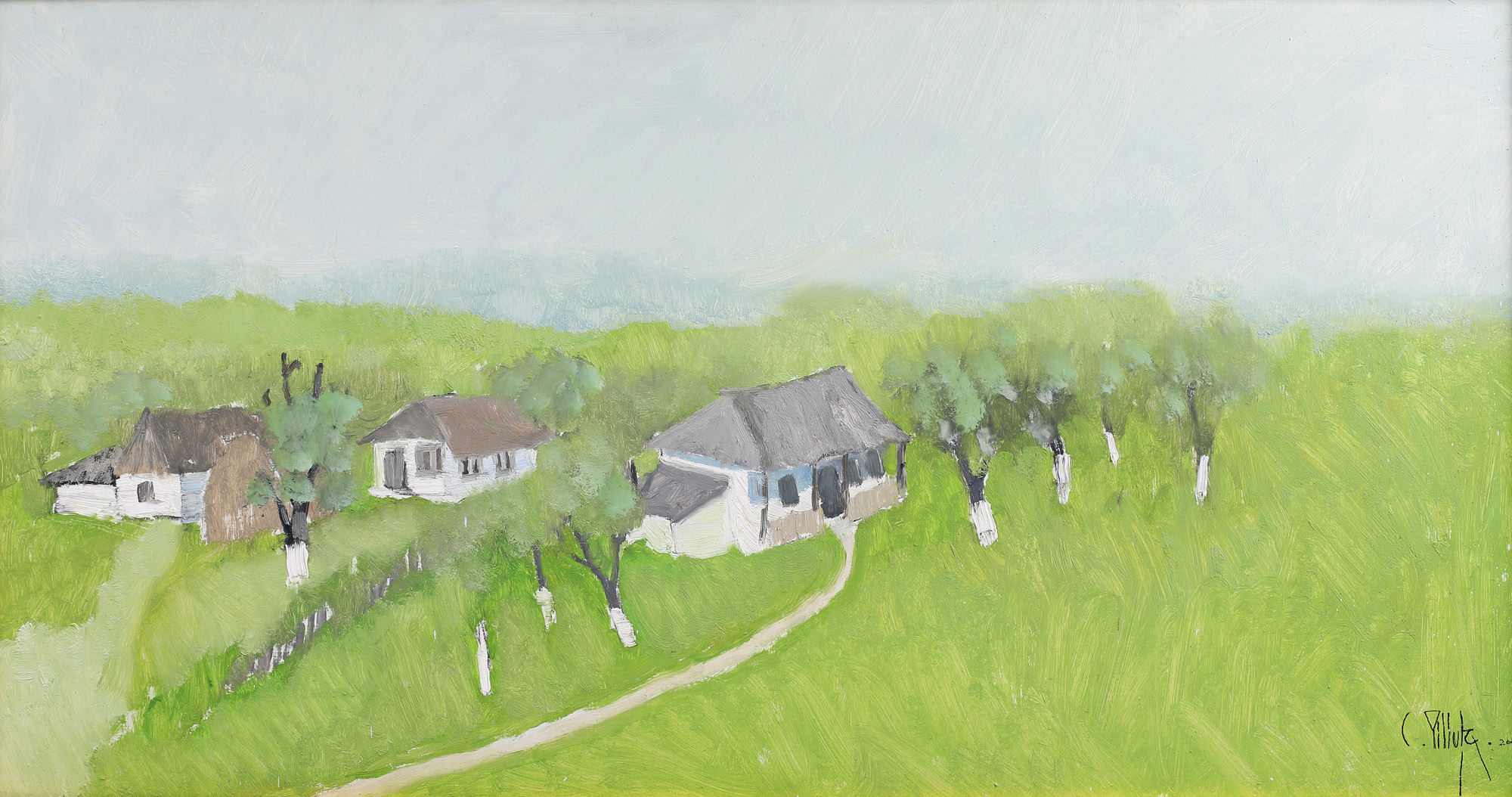 Se naște la Botoșani și studiază sub aripa pedagogului Alexandru Ciucurencu la București, în cadrul Institutului de Arte Plastice „Nicolae Grigorescu”. Debutează la București, dar participă, ulterior, la numeroase expoziții internaționale. Expune la Moscova, New Delhi, Belgrad, Zagreb, Budapesta, Veneția, Varșovia, Vilnius sau Sofia și în multe alte orașe cunoscute la nivel internațional. Primește premii: Premiul I pentru pictură al Uniunii Artiștilor Plastici, unul dintre premiile I ale festivalului „Cântarea României” sau Diploma de onoare a municipiului Urziceni. Se dedică atât picturii, cât și graficii. Realizează peisaje, portrete sau naturi statice și se dedică, asemenea maestrului său, studiului culorii. Verdele, prezent adesea în lucrările sale, se întrunește cu nuanțele de gri în lucrarea de față, creând o sinergie a plaiurilor tradiționale.