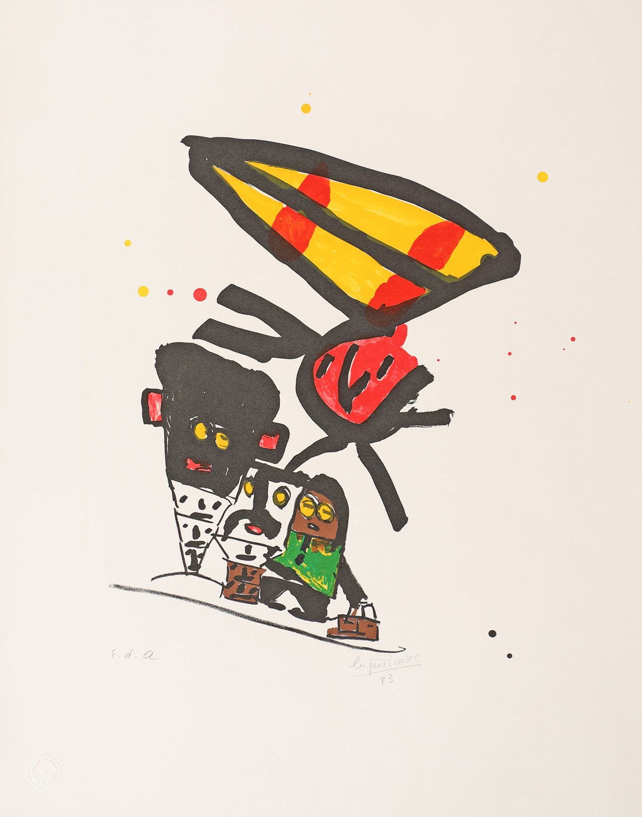 semnat și datat dreapta jos, în creion, "Eugene Ionesco, (19)83"; notat stânga jos, în creion, "E.d.A"