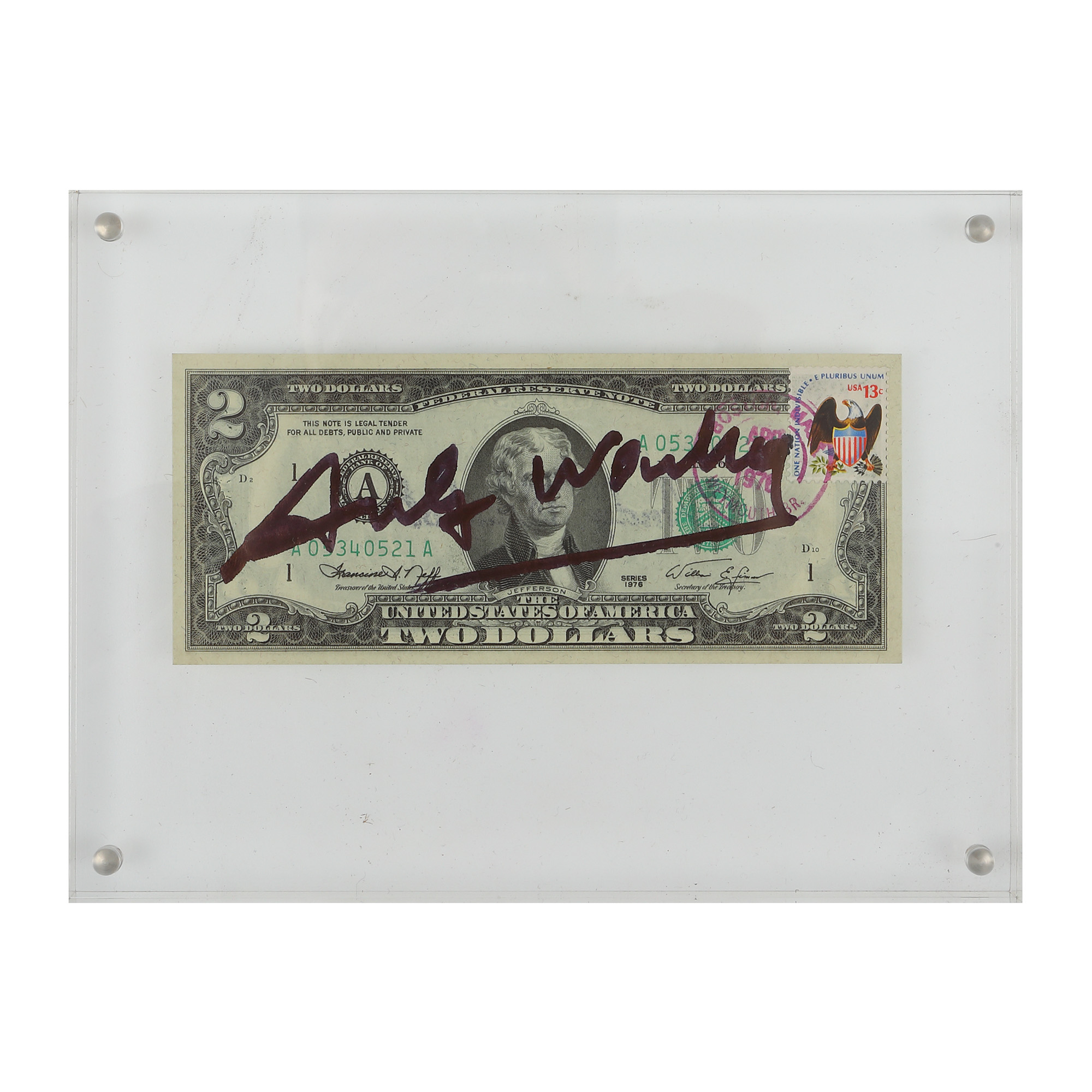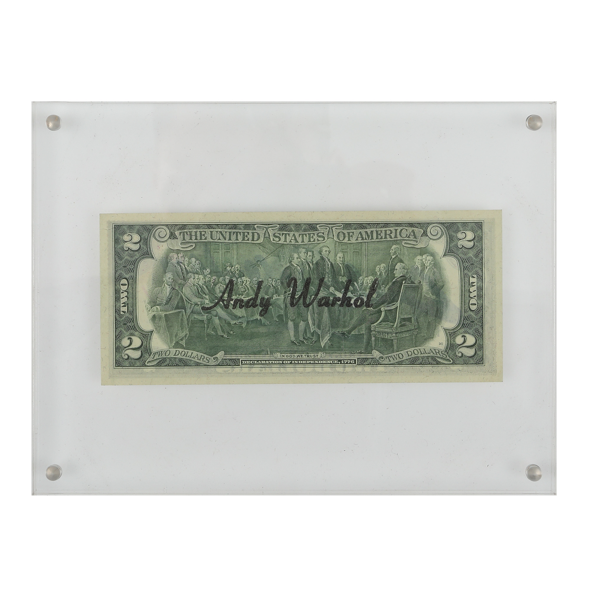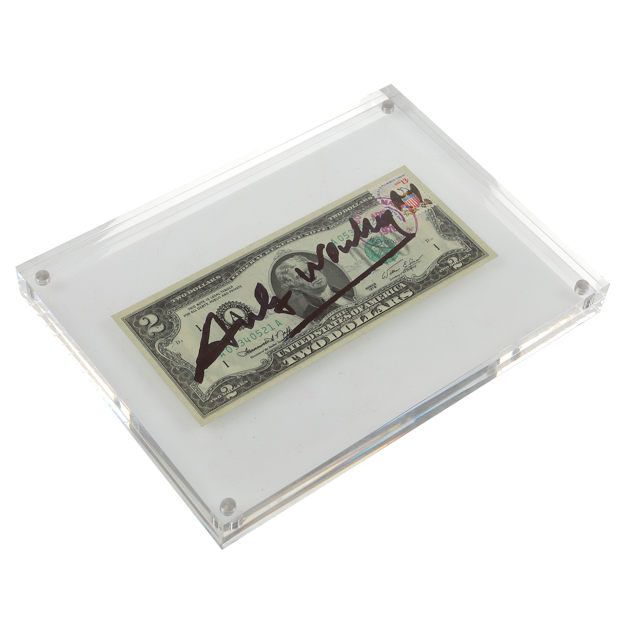 semnat pe verso, cu negru, "Andy Warhol"; seria bancnotei B 0547 7360 A