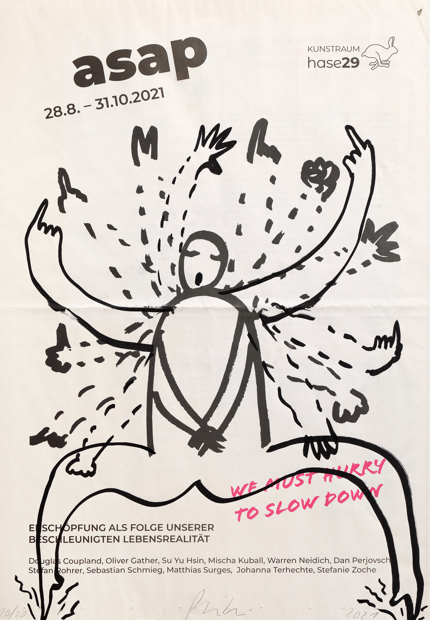 semnat central jos, în creion, ”Perjovschi”; datat dreapta jos, în creion, ”2021”; numerotat stânga jos, în creion, ”20/20”