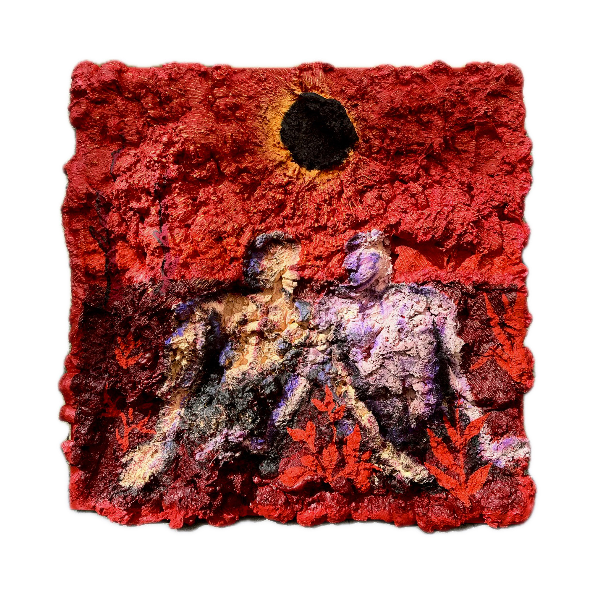 pânză, spumă poliuretanică, acrilice, markere cu acrilic, vopsea industrială